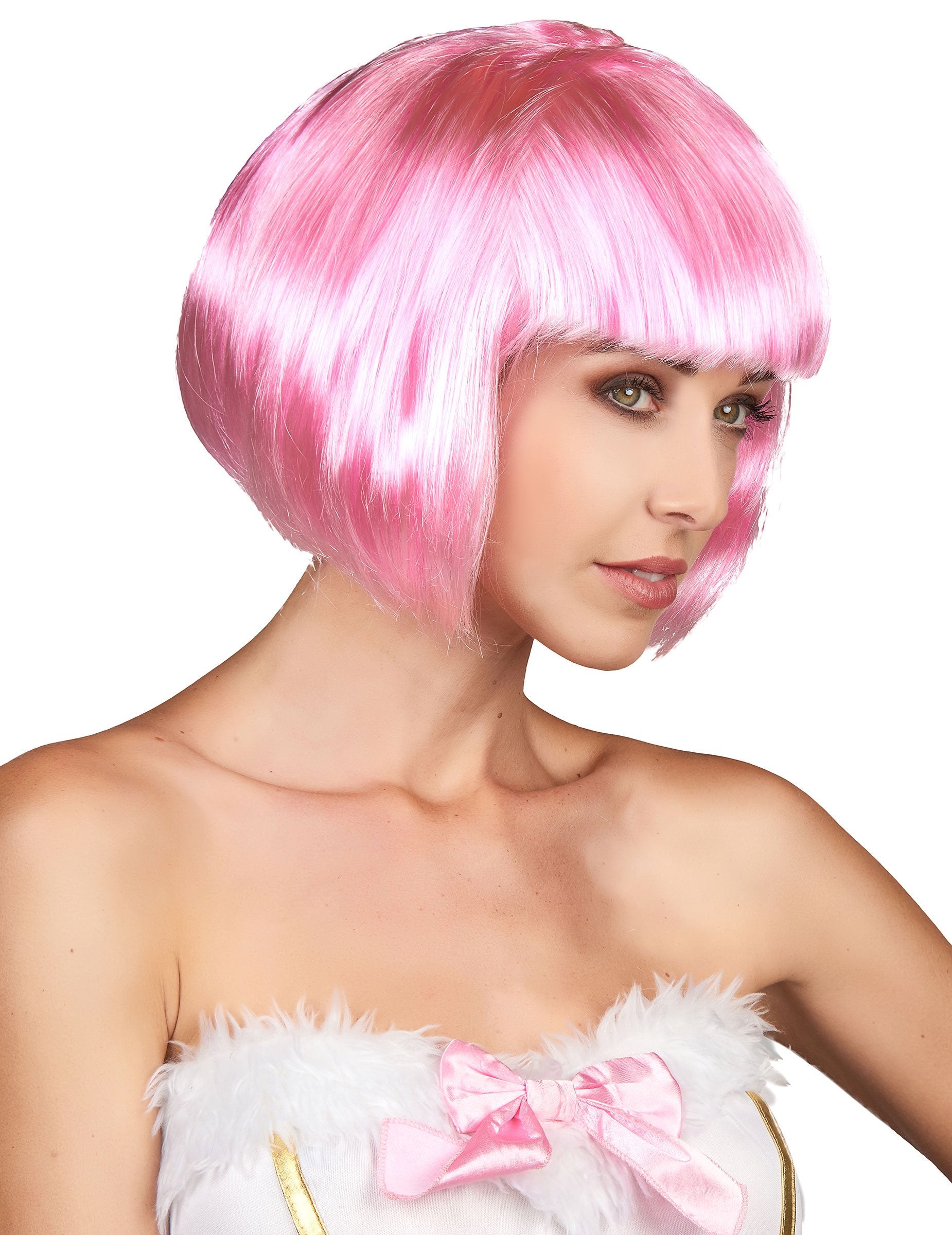Тази розова жена перука за жени има къса квадратна разрез с ресни. Той ще бъде идеален за вашите бляскави костюми по време на кабаре или Чарлстън вечери например.
