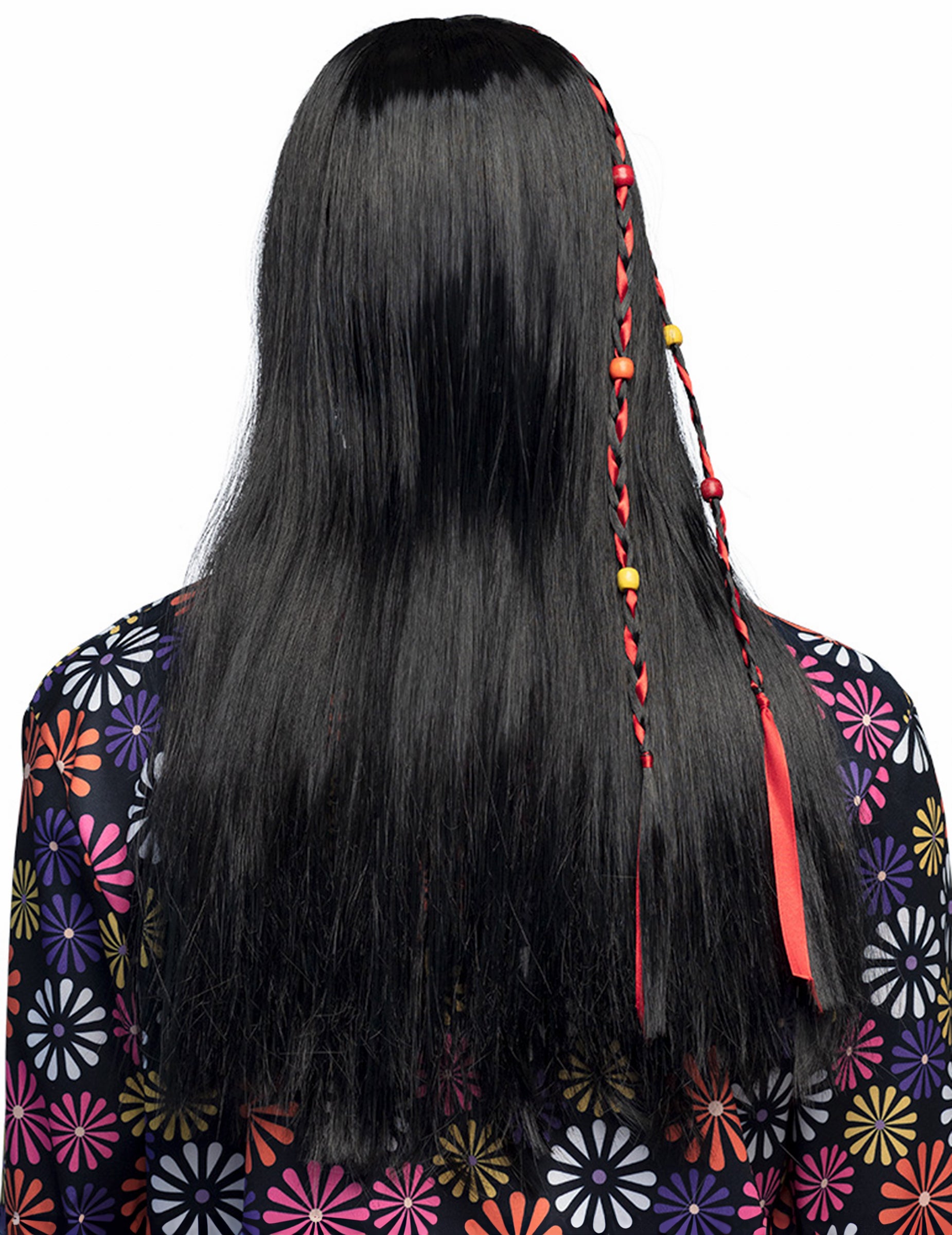 Този хипи за мъжка перука е черен с твърда и дълга коса с малки плитки. Това ще бъде идеалният аксесоар да завършите костюма си за тематична вечер или мир и любов среща с приятели.