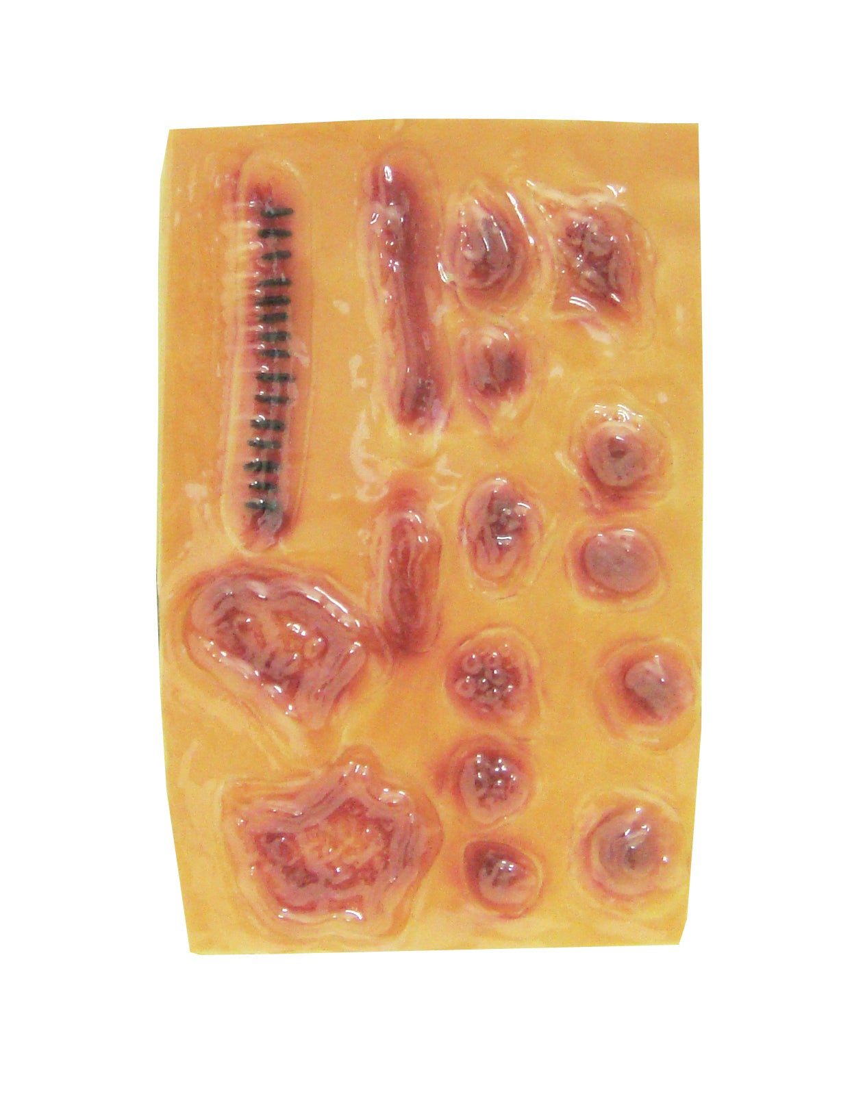 Този набор от наранявания, достойни за Холивуд, включва кървави белези, осакатявания и тонирана кожа. Тези гъвкави наранявания са самозалепващи се. Този комплект е идеален за завършване на маскировка по време на Хелоуин.