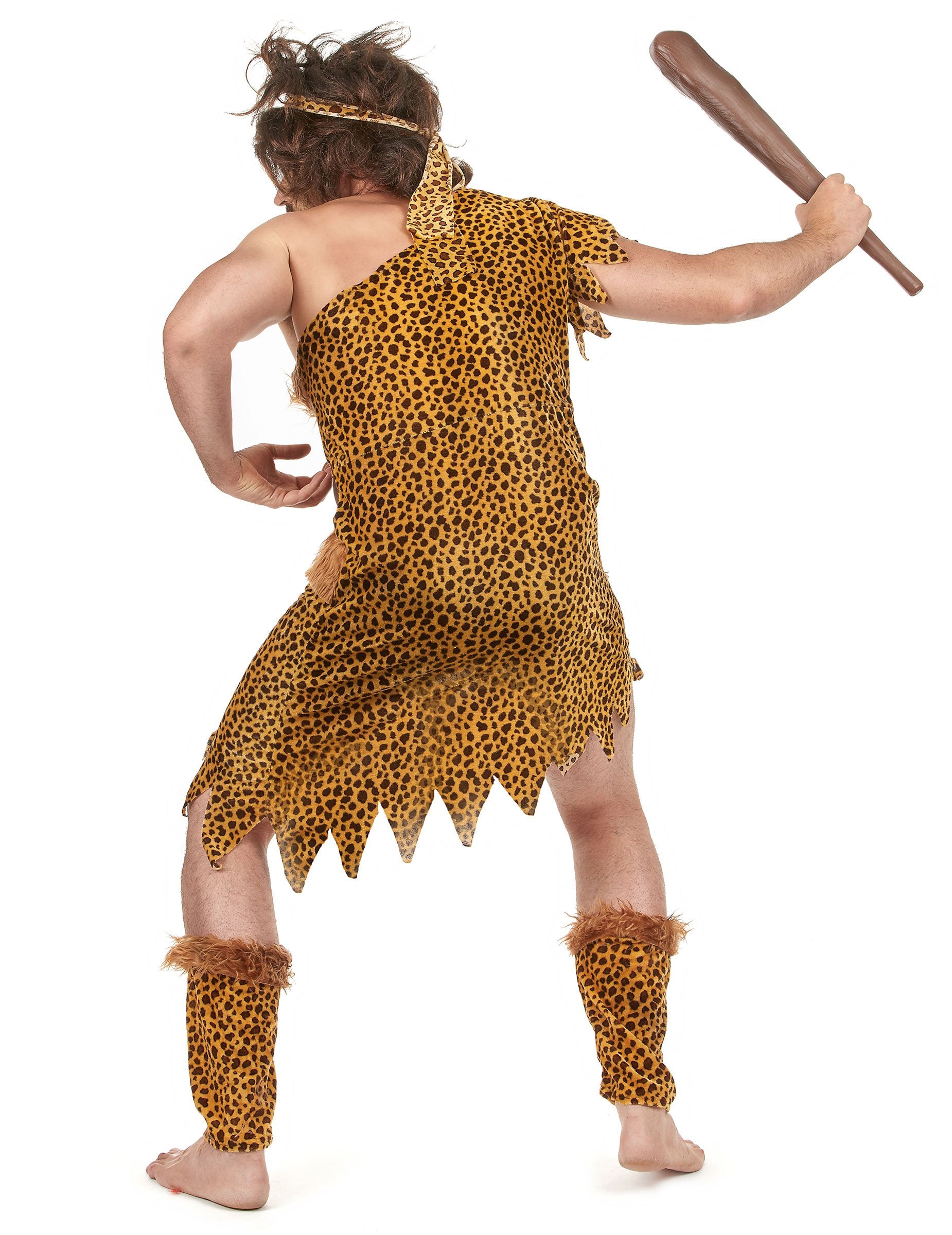 Този праисторически маскировка на човек се състои от туника, колан, панделка за коса и покритие на телета. Фалшивата кожа на False Beast украсява елементите на маскирането (Гурдин и перука не са включени). Това панорално ще ви направи най -истинските от мъжете от пещерите по време на карнавала или за прикрита вечер.