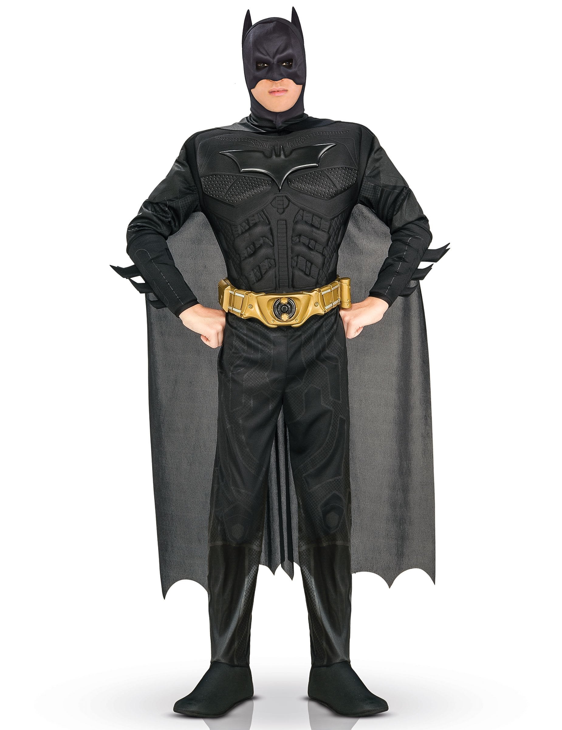 Тази превъзходна маскировка на Батман за мъже включва комбинация, нос, колан и гъвкава маска за тъкани е пришита с нос. Черната комбинация има 3D торс и мускули (термоформира директно в текстила с много реалистичен ефект) с логото на този супергерой. Гъвкавата маска за тъкани е свързана с Черния нос, за да изглежда като Батман по всякакъв начин. Златният пояс, който имитира този на известната бдителност, идва да завърши този костюм. С тази официална маскировка под официален лиценз за Батман въплъщават известния герой на Готъм Сити, по време на прикритите ви вечери или карнавал.