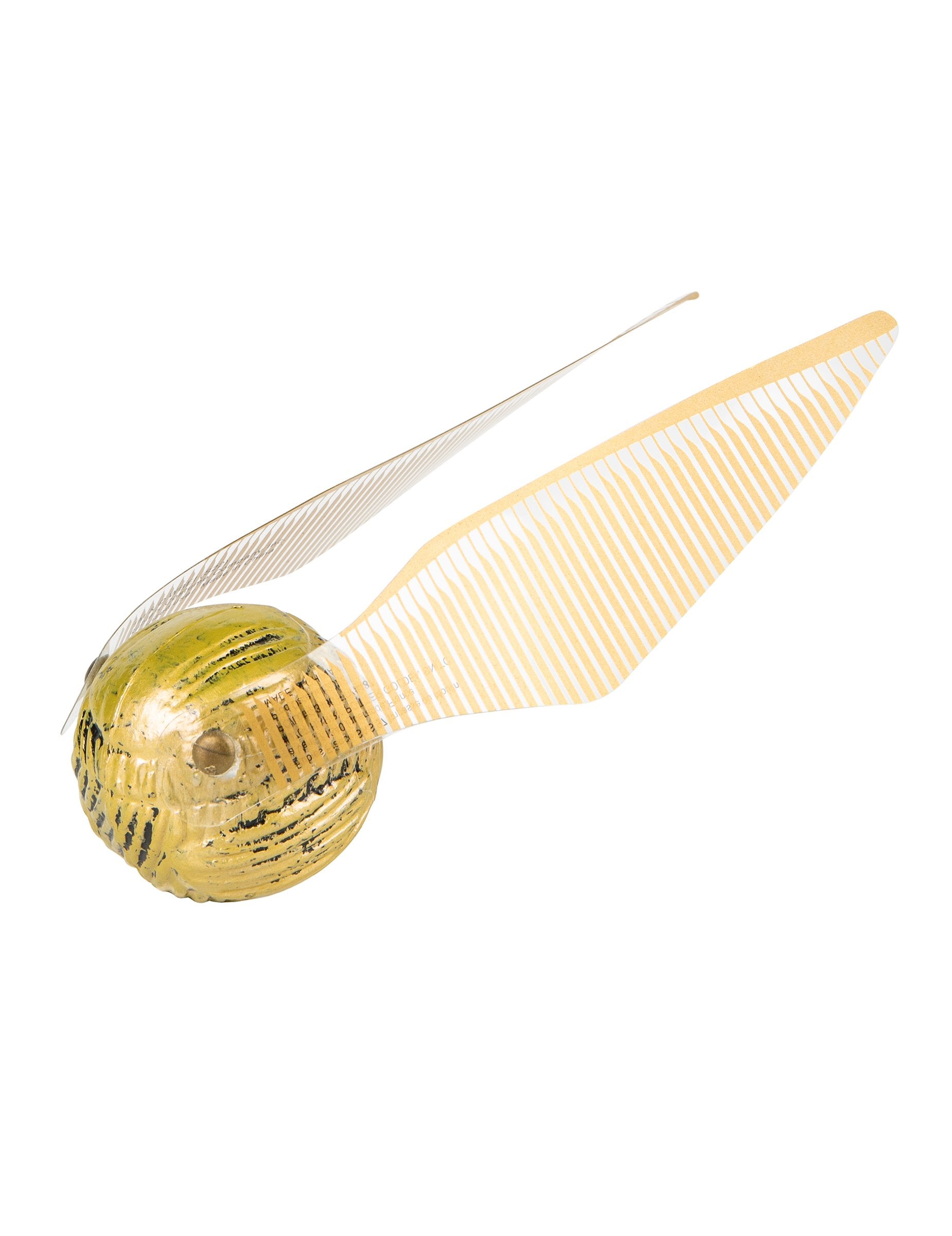 Този ярко злато аксесоар Хари Потър е под официален лиценз. Тази малка пластмасова топка е кръгла и крилата. Той представя златен цвят и бели крила със златна граница, които са твърди. Златният Хари Потър може перфектно да завърши прикриването ви от Хари Потър или този на ученик от най -известната школа за магьосници, по повод карнавала или за вечер, прикрита по темата за Хогуортс.