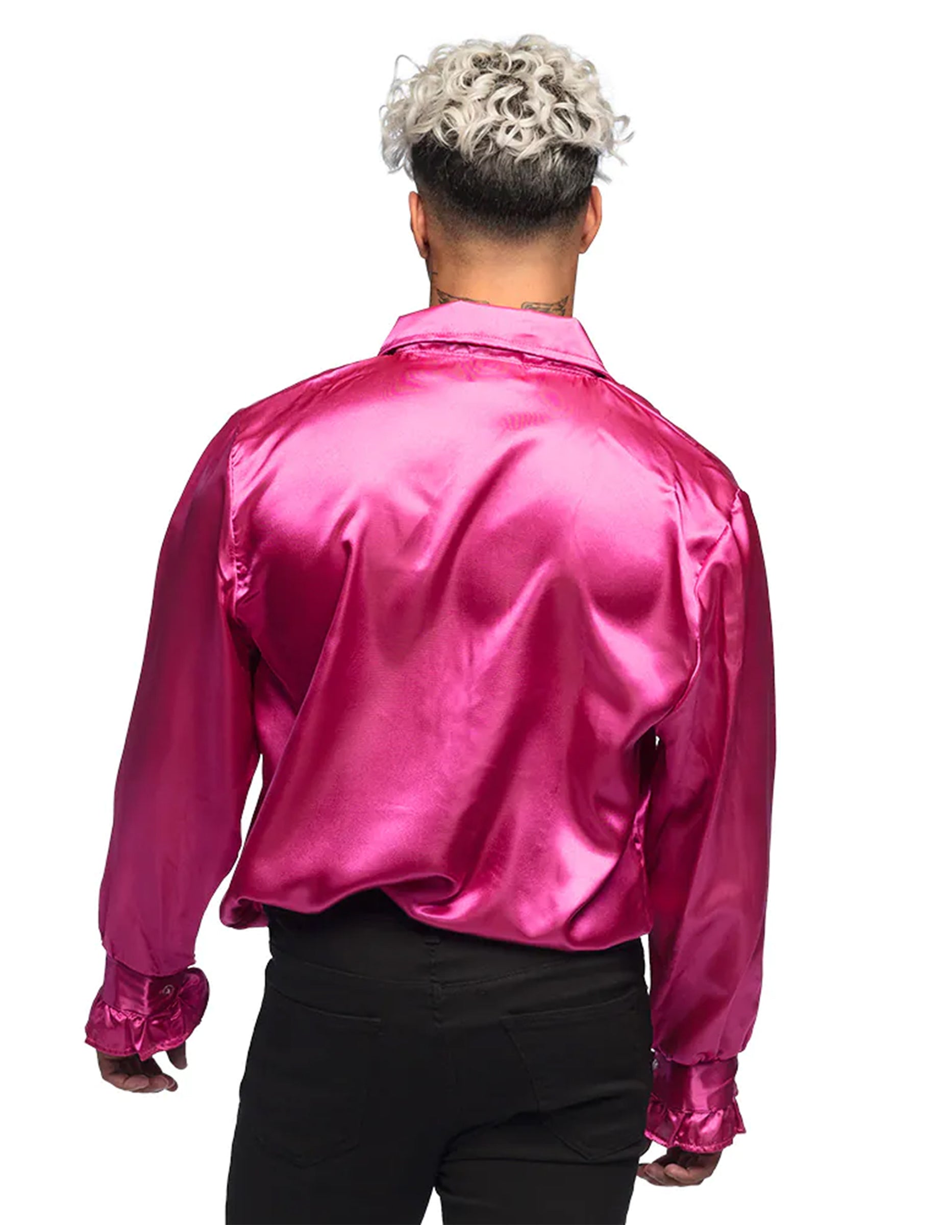 Тази диско прикритие за мъже се състои от сатенена розова риза с леко разгънати ръкави, копчета и излишъци. Този костюм ще бъде идеален за запалване на сцената за диско вечер!