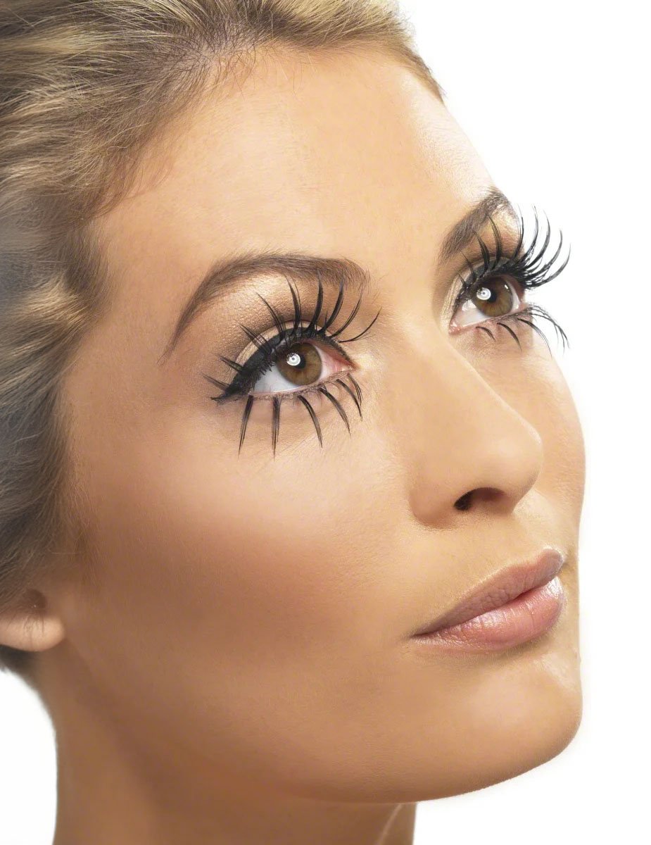 Тези фалшиви мигли за горната и долната част на окото са разделени и черни. Включена тръба тръба ще ви позволи да ги поправите лесно. Този аксесоар е идеален за завършване на вашето облекло по време на прикрито или тематично събитие.