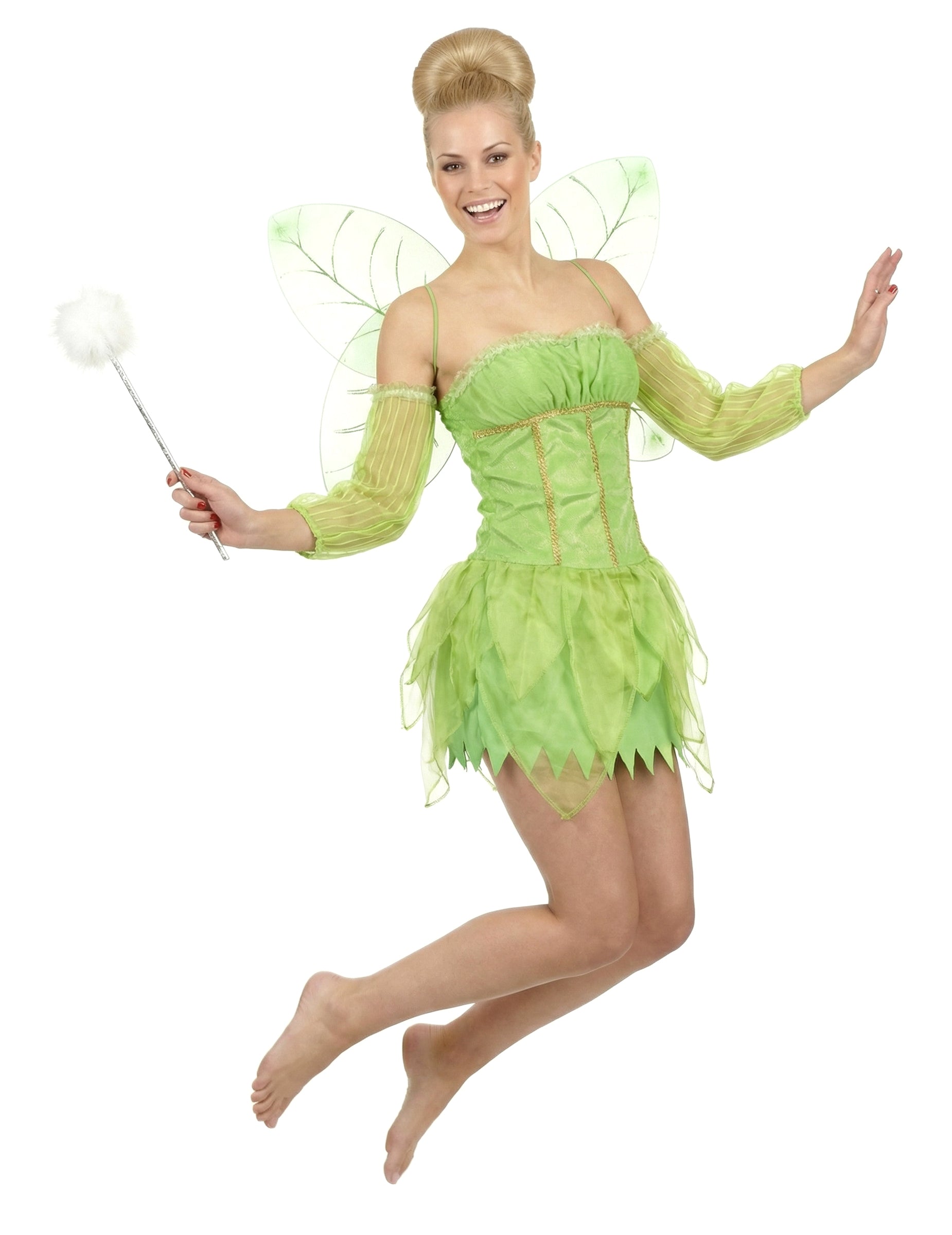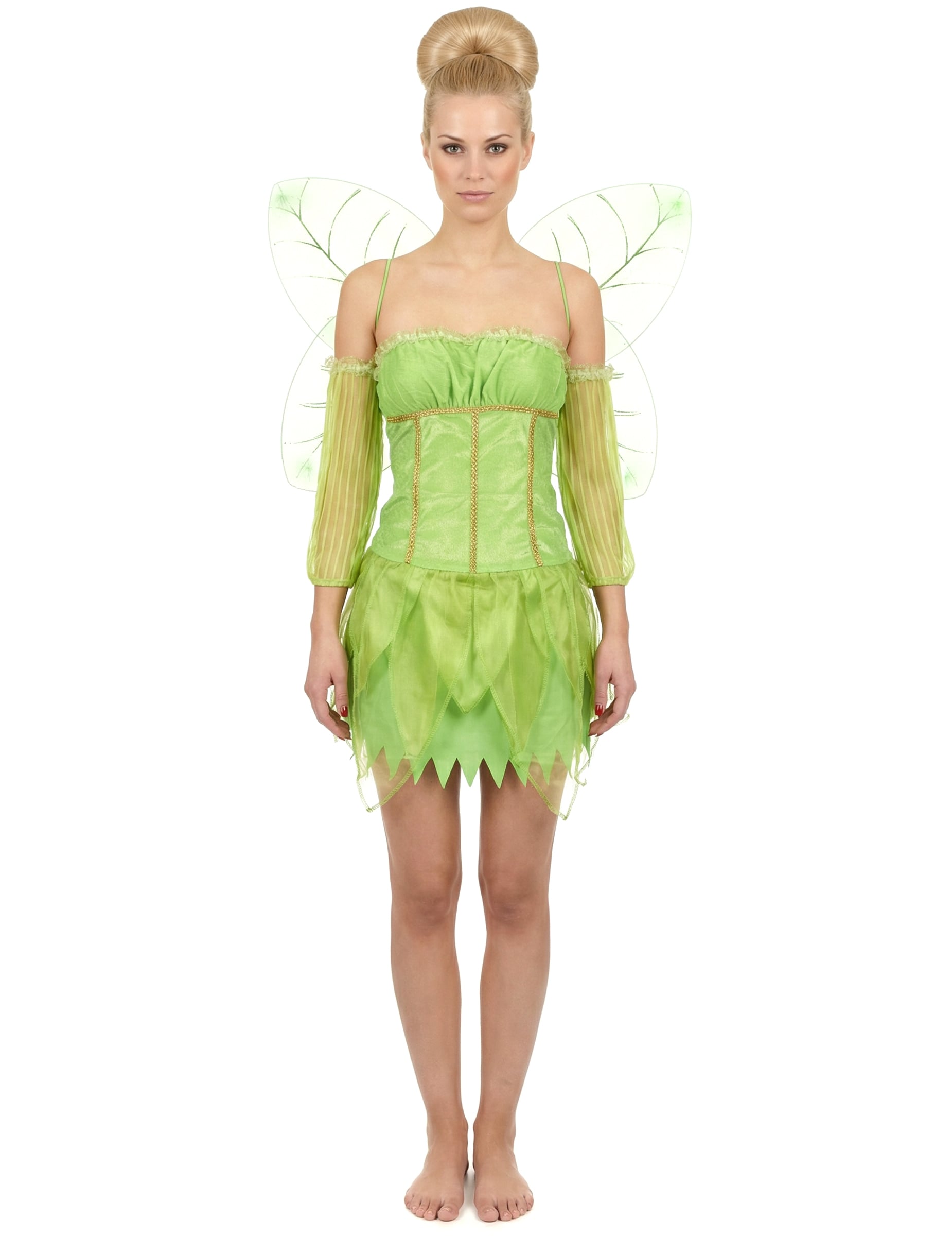 Този зелен фееричен костюм за жени се състои от рокля, маншети и чифт крила.