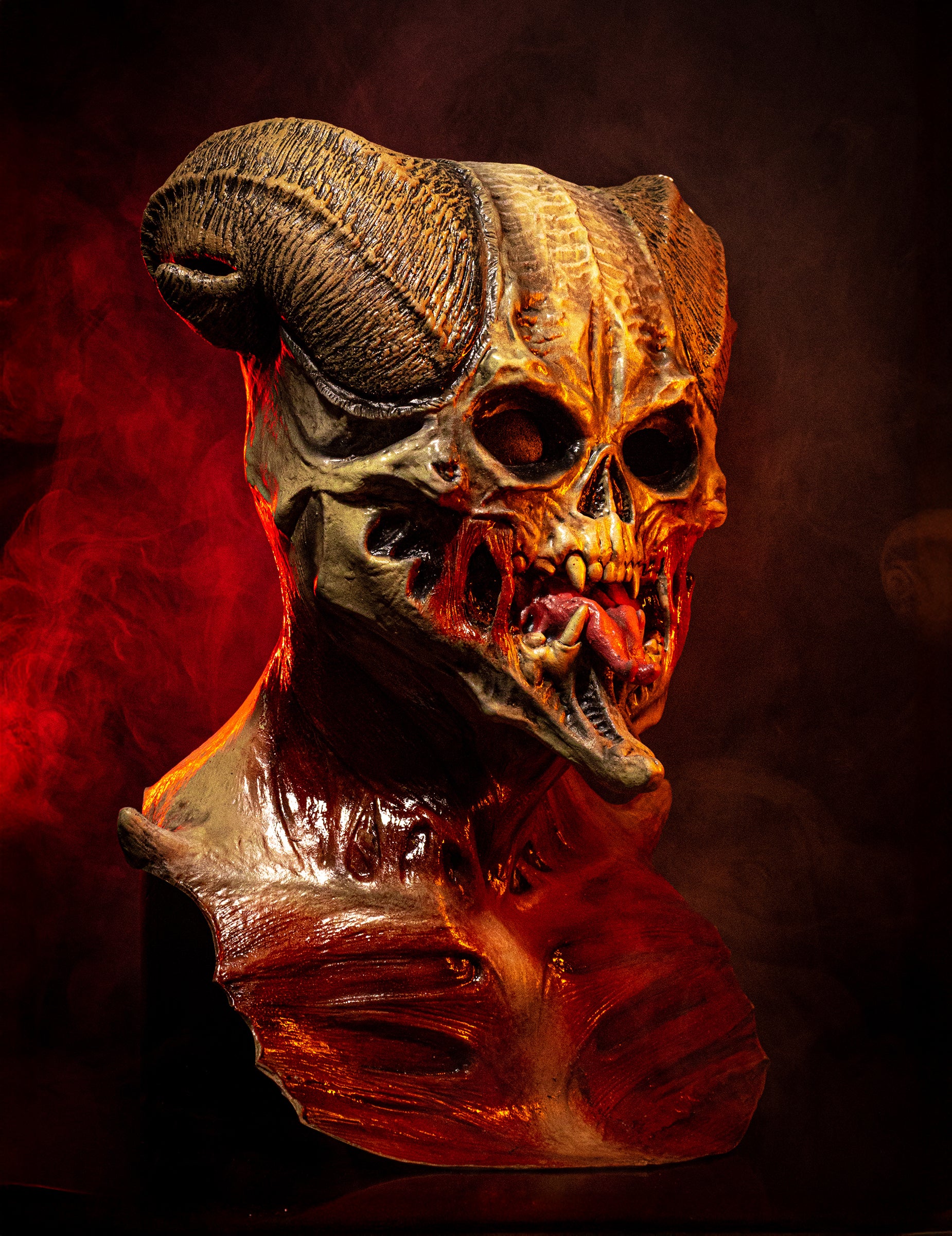 Тази латекс пълна маска представлява черепа на дявол с кървав ефект на скелет върху гърдите. Този ръчно рисуван аксесоар е идеален за завършване на вашата маскировка по време на вашата вечер на Хелоуин.