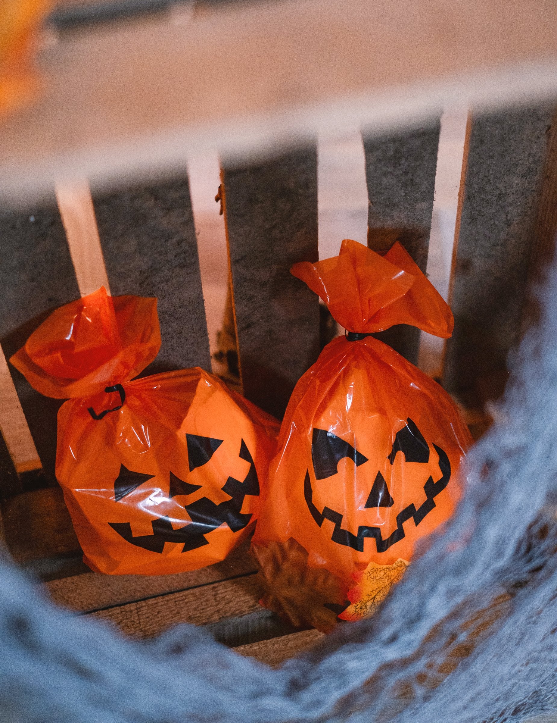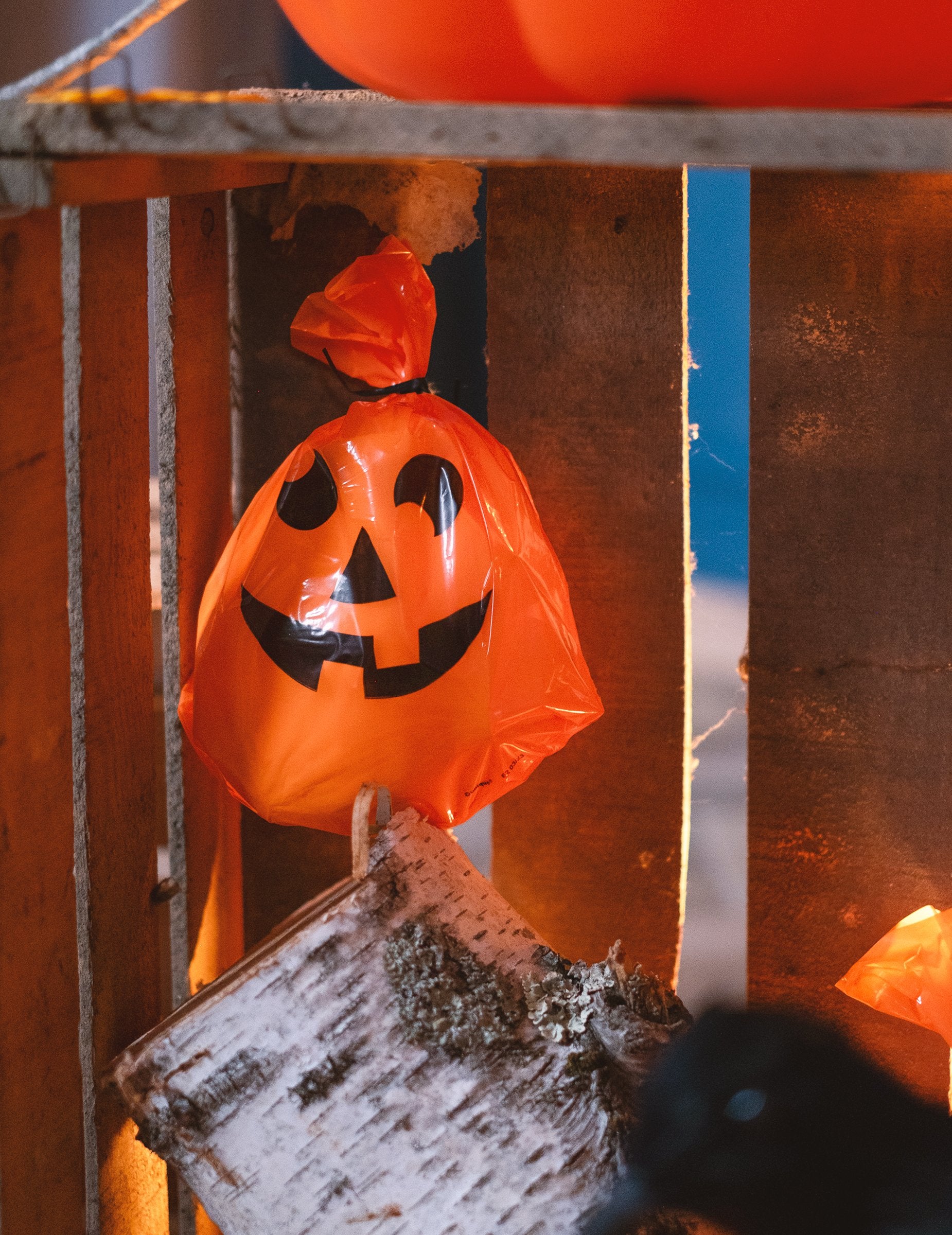 Този пакет се състои от 20 оранжеви торбички. Всеки от тях е отпечатан с тиквено лице. Всички имат различни изрази. Всяка торбичка е с размери 15 х 20 см. Трябва да ги напълните само с мъртви листа или хартия например и да изградите черните крепежни елементи. Закачете тези тикви в дърветата във вашата градина или върху храсти, огради или веранда за голям ефект в деня на Хелоуин. Уникално парти за брандиране