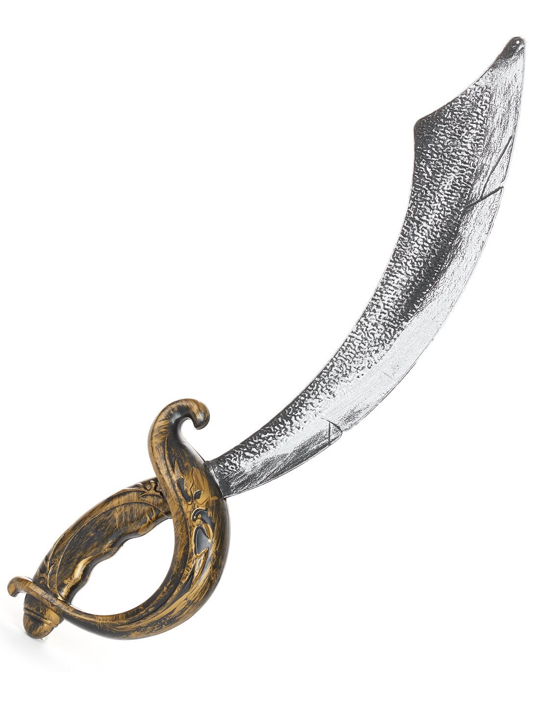 Тази пластмасова пиратска сабя е с дължина приблизително 48 см. Острието е черно и сиво на цвят с метален ефект. Дръжката е черна и златна. Този аксесоар ще бъде идеален за завършване на пиратски костюм за карнавала или прикрита вечер.