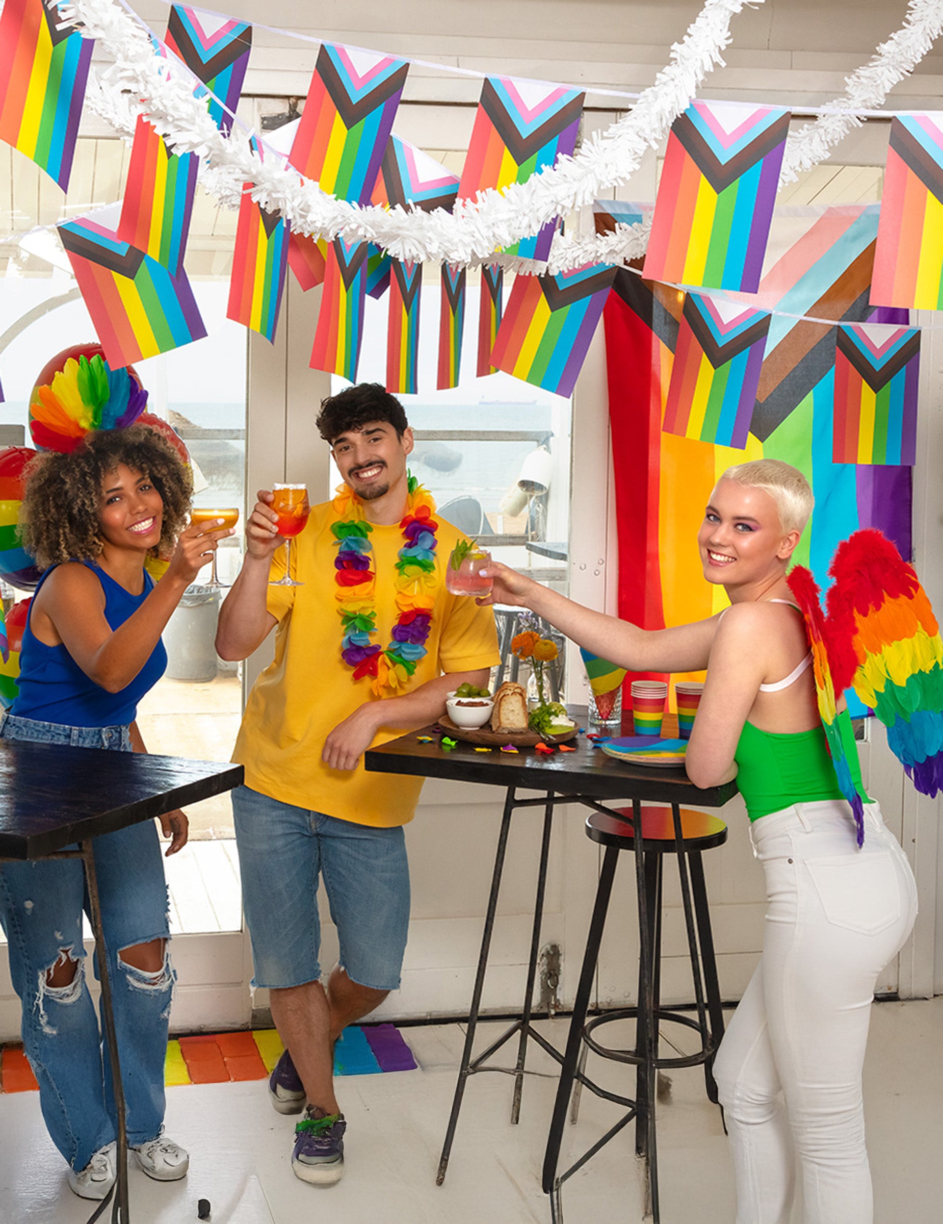 Тези крила за възрастни са украсени с многоцветни пера. Те лесно ще се носят с помощта на две еластични ленти, които ще минават около ръцете ви. В цветовете на дъгата този аксесоар ще бъде идеален за завършване на вашия костюм по оригинален и пъстър начин по време на карнавала или вечер, прикрита с приятели.