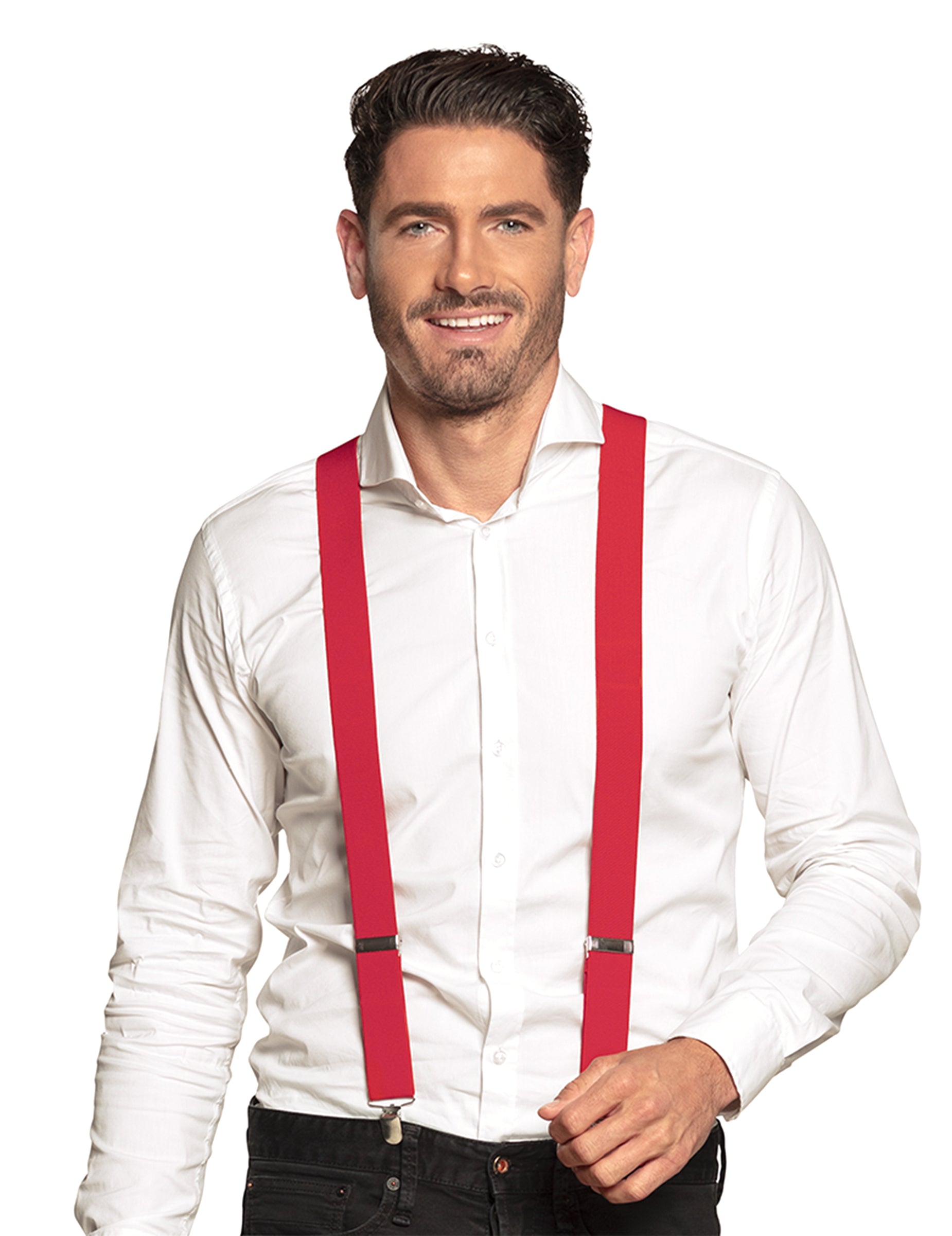 Тези червени каишки са за възрастни. Тази двойка окачващи ще бъде фиксирана и ще бъде уредена с помощта на метални клещи отпред и един отзад. Тези червени каишки са с ширина приблизително 3,6 см. Този аксесоар ще бъде идеален за завършване на вашето облекло по време на тематична вечер или за прикрито събитие.