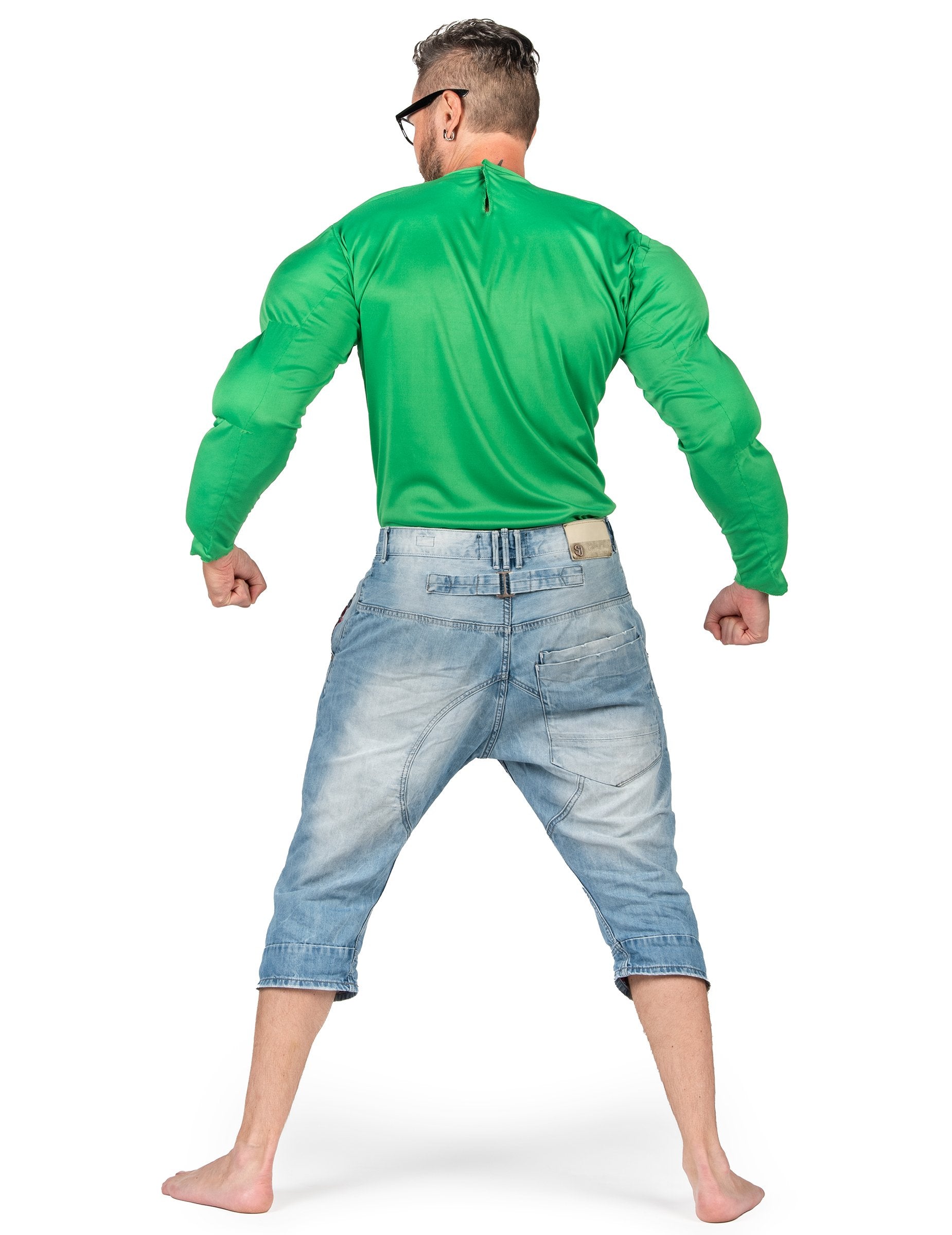 Това мускулно зелено високо е за възрастни (панталони, колан и грим не са включени). Той е флуоресцентно зелено на цвят с фалшиви мускули, подплатени отпред, на торса и по ръцете. Това високо зелено се затваря отзад, използвайки драскотини. Този мускулен връх ще бъде перфектен, за да ви превърне в мускули на мосю за карнавала или за прикрита вечер. Copyright Widmann Srl. Copyright Widmann Srl