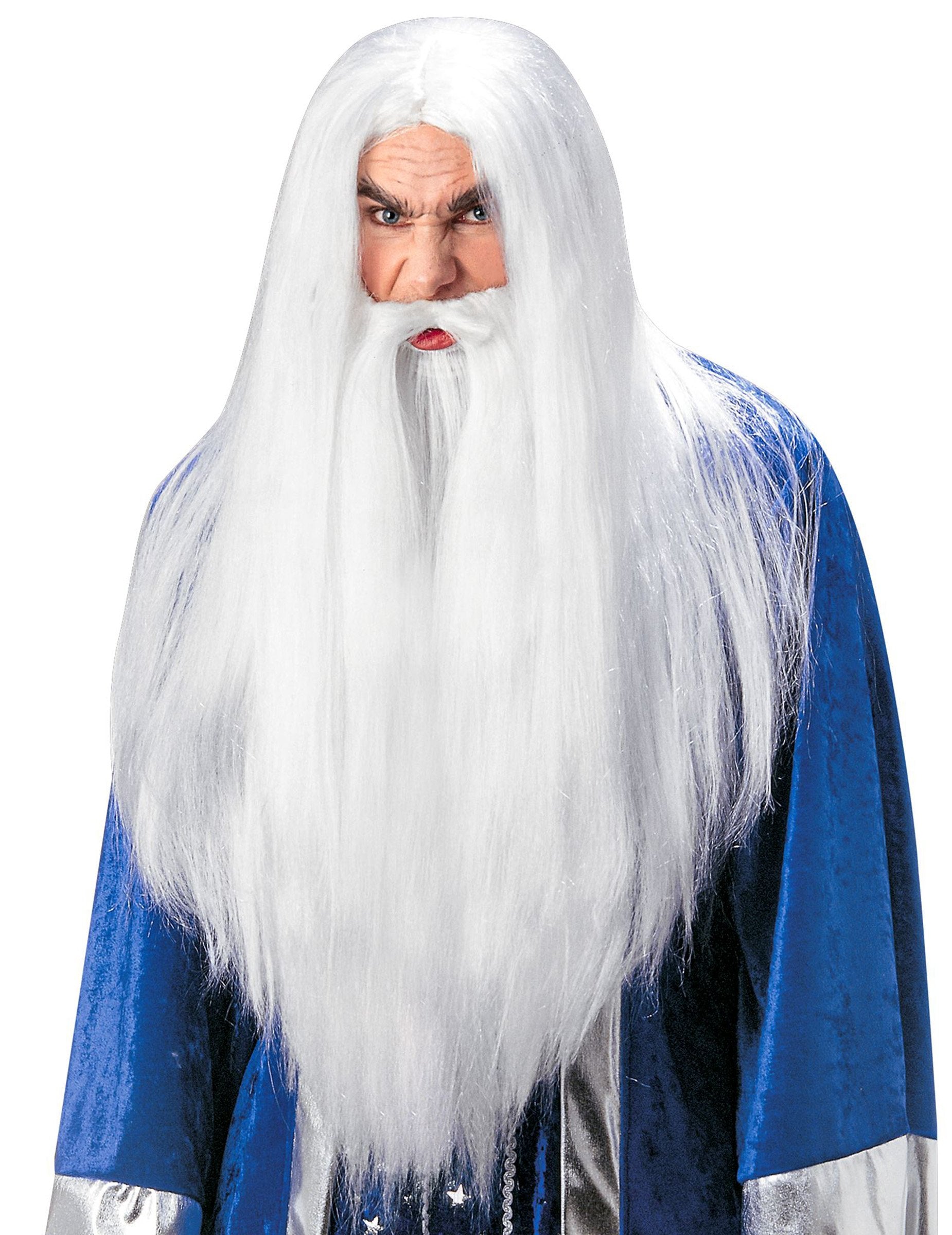 Тази магьосница за възрастни магьосници има много дълга бяла синтетична коса. Той е придружен от огромна бяла брада, която ще падне върху бюста и мустаци. Перуката е с дължина 70 см, а брадата е дълга около 55 см. Този комплект ще бъде идеален за конкуренция на костюм на магьосник или магьосник по време на костюм вечер с приятели или за авторско право на Хелоуин Widmann SRL. Copyright Widmann Srl