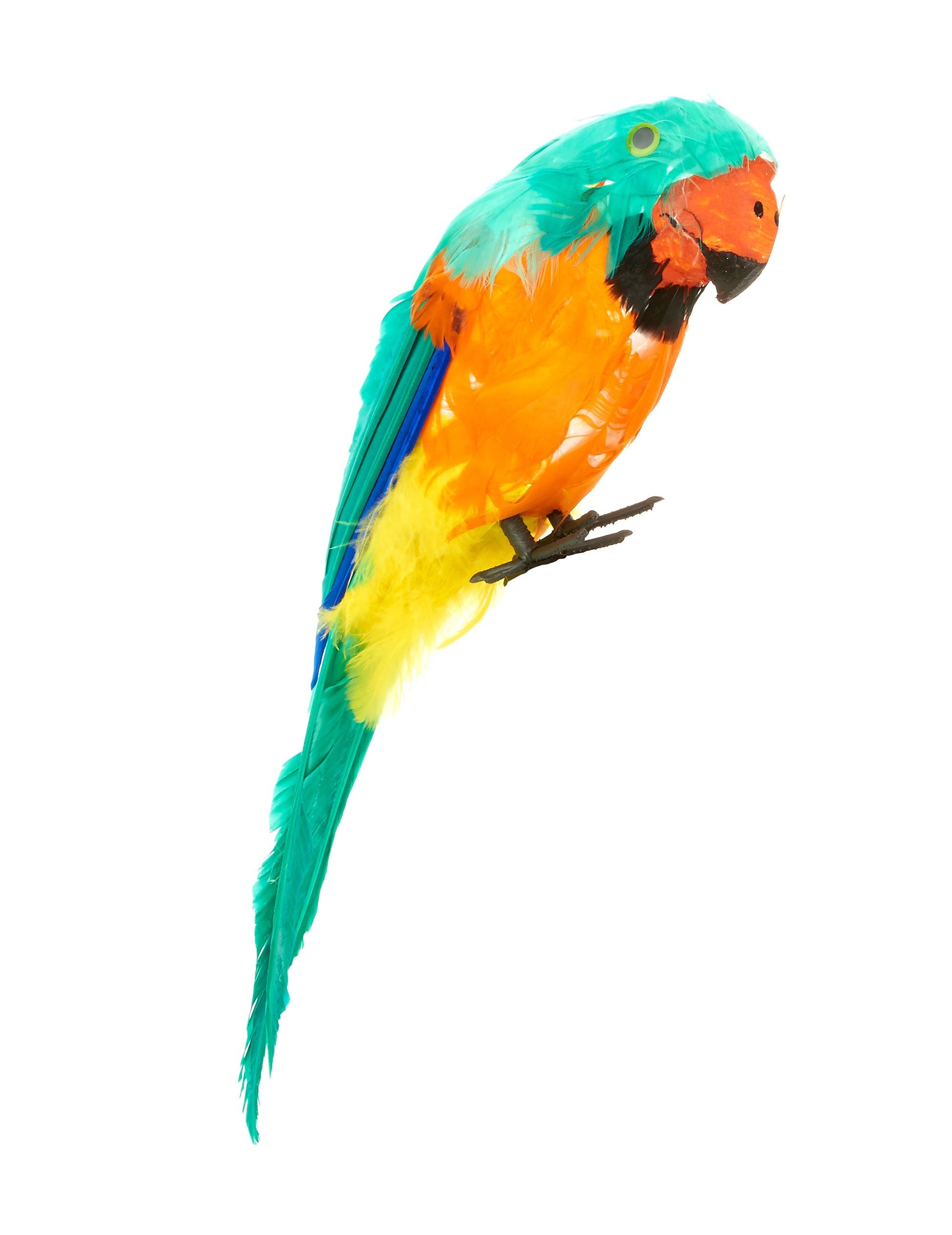 Този островен папагал е направен от полистирол. Покрит е с цветни зелени, синьо, оранжево и жълти пера. Клюнът е боядисан в оранжево и черно. Този папагал има черни пластмасови крака. Еластиците са фиксирани на тези крака и ще ви позволят да закачите папагала до рамото си или на декорация. Този малък папагал е с дължина приблизително 38 см. Този аксесоар ще бъде идеален за завършване на костюм за пират или вахине за вечерта, прикрит от всякакъв вид. Copyright Widmann Srl