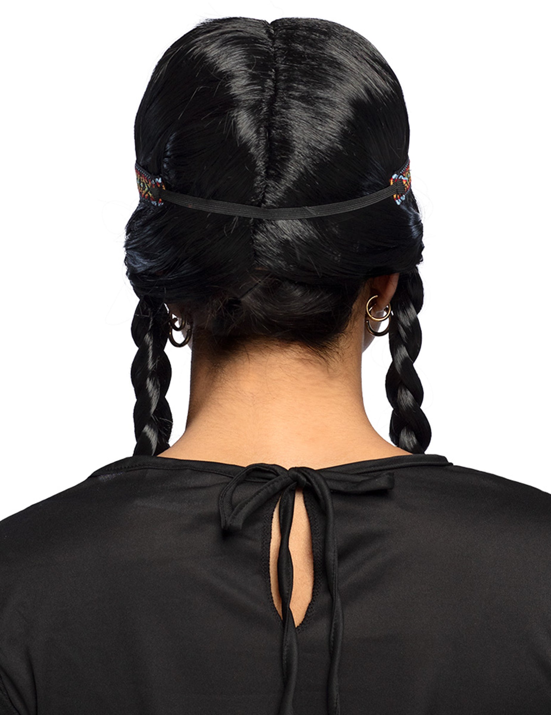 Тази индийска перука е за възрастни. Той е черен и сплетен. Плитките завършват с малка бродирана пристрастие. Съответстващата лента за глава завършва тази перука. С този аксесоар ще се превърнете в истински индианец по време на тематично парти или за карнавал.