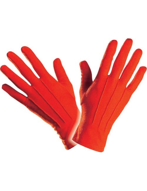 Тези червени къси ръкавици са за възрастни. Те са с дължина приблизително 22 см до максимум. Тези цветни ръкавици ще бъдат идеални за завършване на костюм на клоун за карнавала например. Copyright Widmann Srl