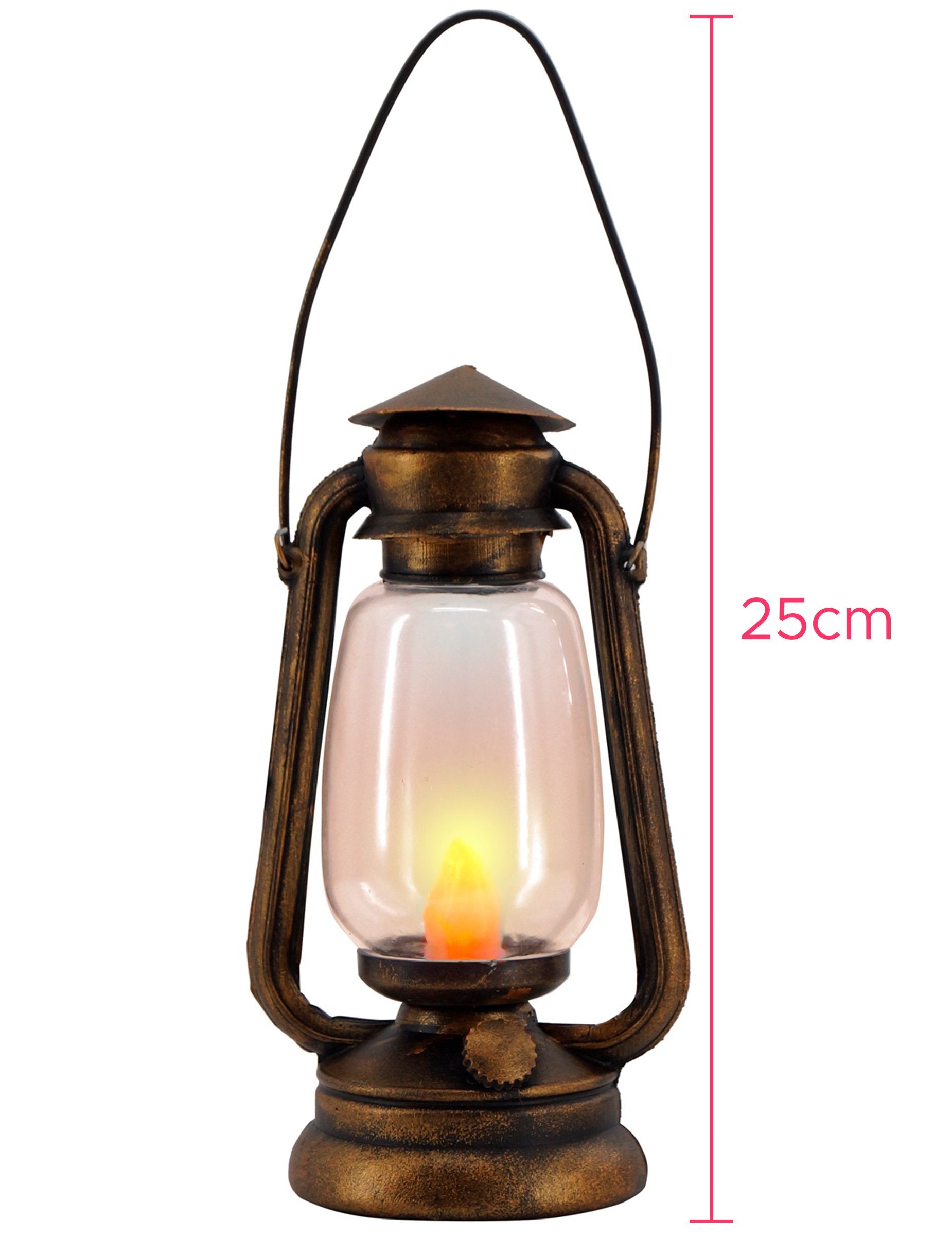 Тази много качествена маслена лампа е пластмасова. Висока е 25 см. Бутон под лампата ще ви позволи да запалите светодиод (включена батерия), който ще имунизира пламък. Този по -истински аксесоар от живота ще бъде идеален за декориране на вашия интериор или завършване на вашето облекло по време на Хелоуин, Карнавал или за вечер по пиратската тема.
