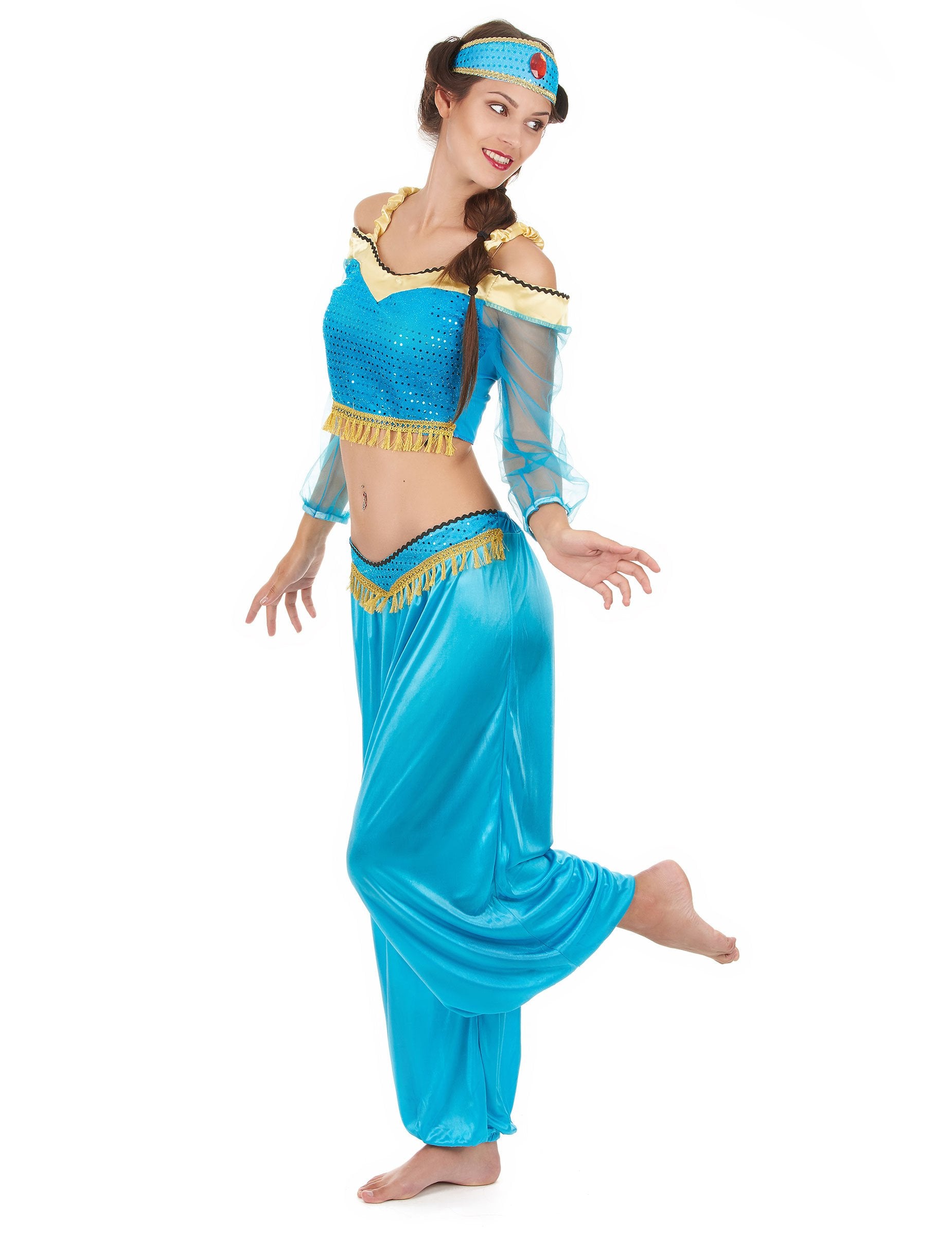 Това костюм за възрастни представлява ориенталска танцьоркаВключва топ, панталон и лента за глава (обувките не са включени).
