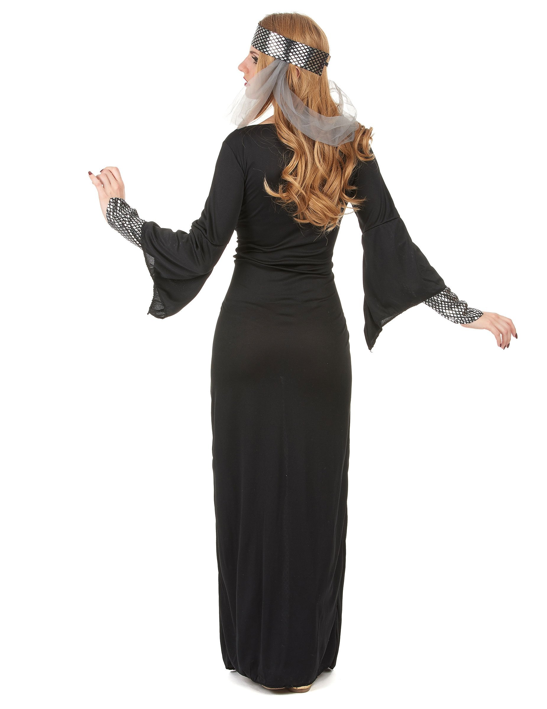 Този карнавален костюм за възрастни пресъздава дама от Средновековието. Комплектът включва рокля и лента за глава (обувките не са включени).