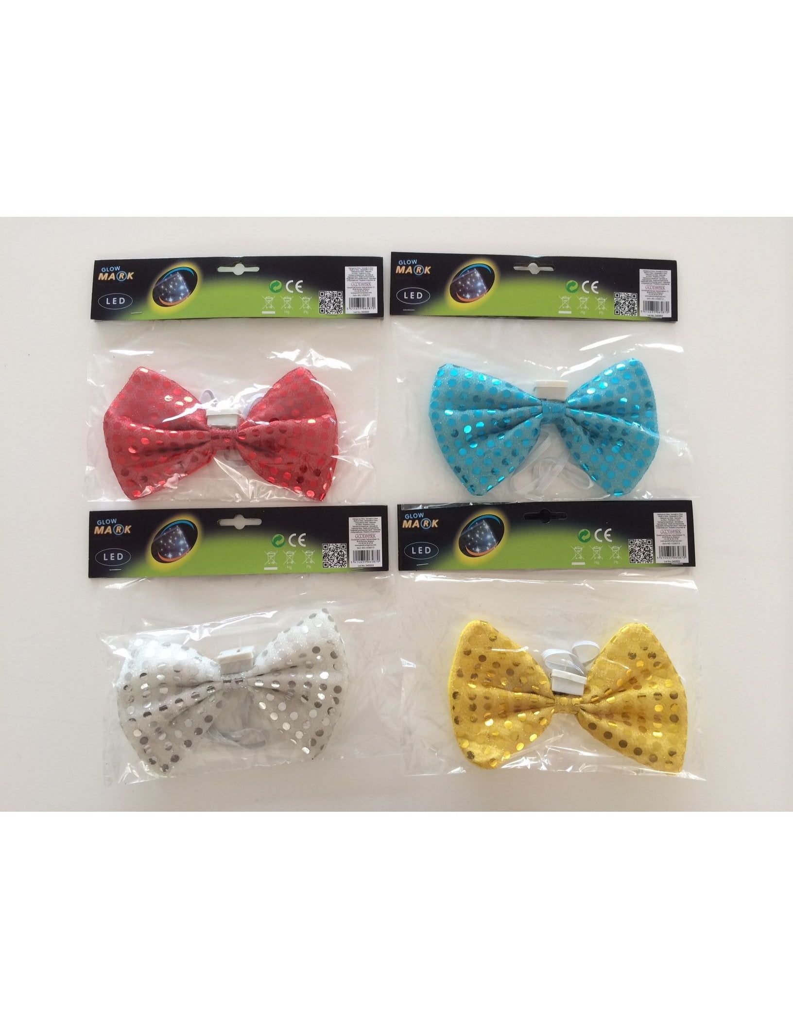 В центъра на папионката се намира малко отделение за батерии. Отстранете защитния капак и папионката ще светне.