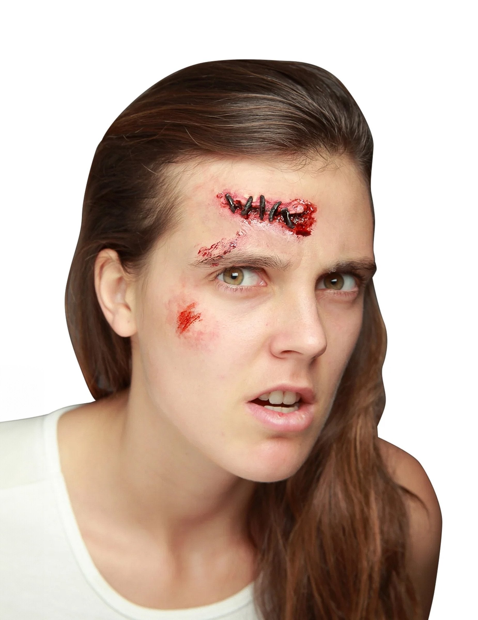 Тази фалшива рана за възрастни е в латекс. Той е с дължина приблизително 6,5 см и 3 см в максимална ширина. Тя трябва да бъде поставена върху чиста кожа, като се използва специално лепило (не е включено). Този грим ще бъде идеален за Хелоуин, ако планирате да излезете с Франкенщайн или друго чудовище.