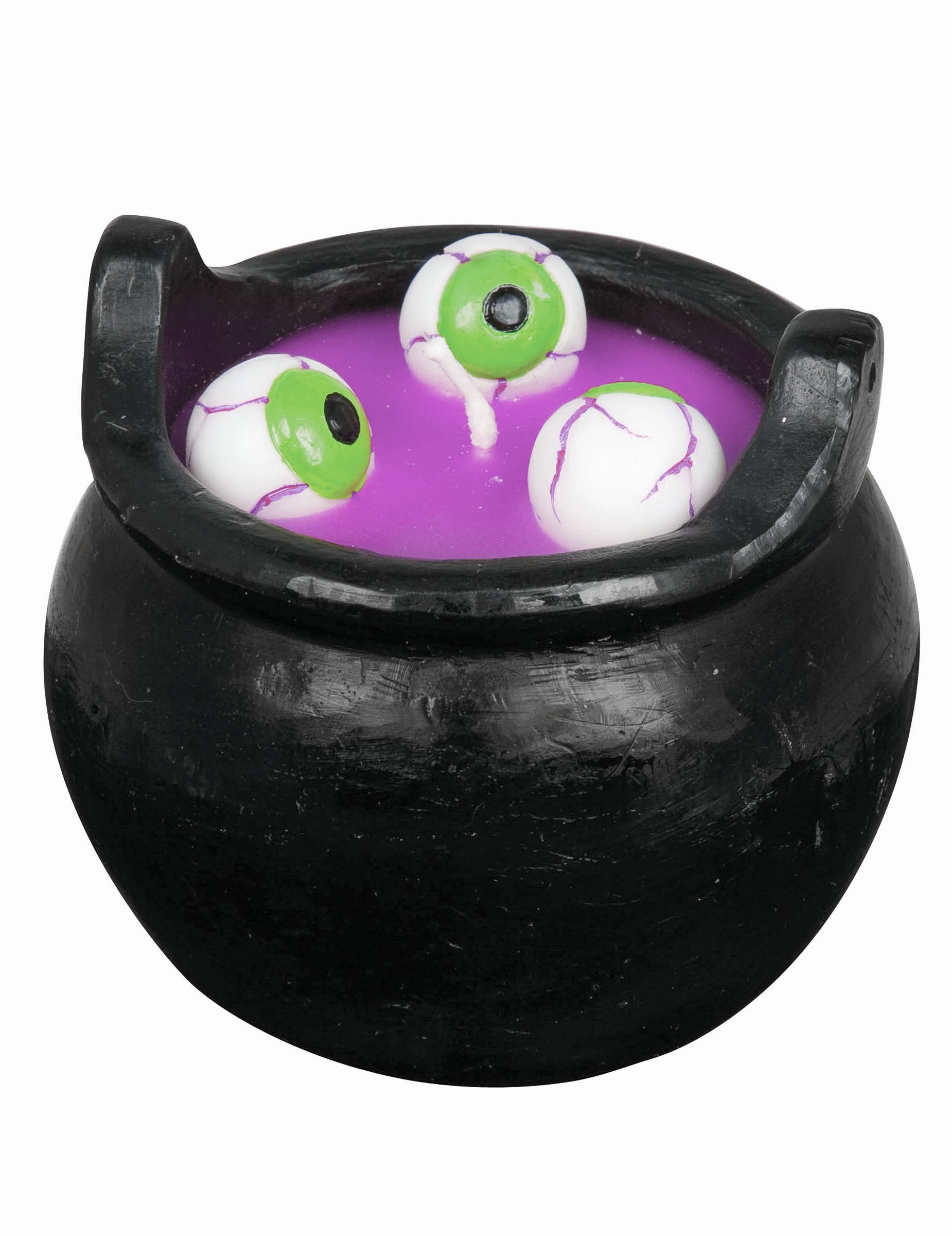Тази декорация е свещ, представляваща саксия. Три очи се къпят в случаен (зелен, оранжев ...) сок. Фитилът е засаден в средата на очите. Много плашещи, тези очи се инжектират с кръв. Той е с размери 8 cm с 8 cm. Сварете гостите си, като запалите тази свещ на Хелоуин вечер.