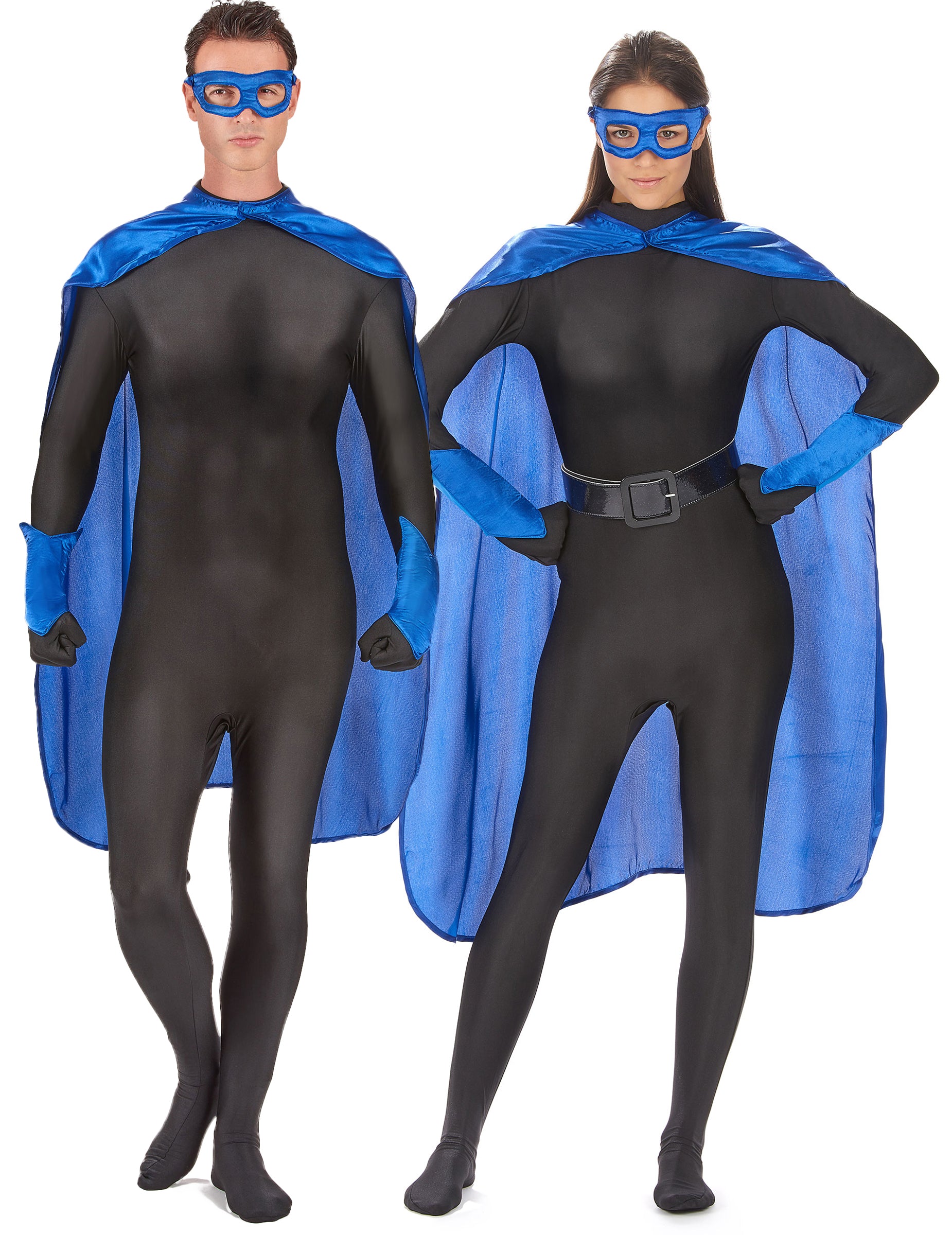 Този комплект за възрастни супергерои се състои от нос, вълк и чифт маншети (комбинация и колан не са включени). Комплектът е направен в сатенено тъмносиня тъкан. Нос е дълъг около 117 см. Тя се затваря отпред, използвайки драскотина. Платният вълк също се поддържа около лицето ви с помощта на еластична. Маншетите образуват точка на долните ръце. Те ще завършат вашия супергерой. Този комплект ще бъде идеален за лесно смяна в супергерои и спасяване на света!