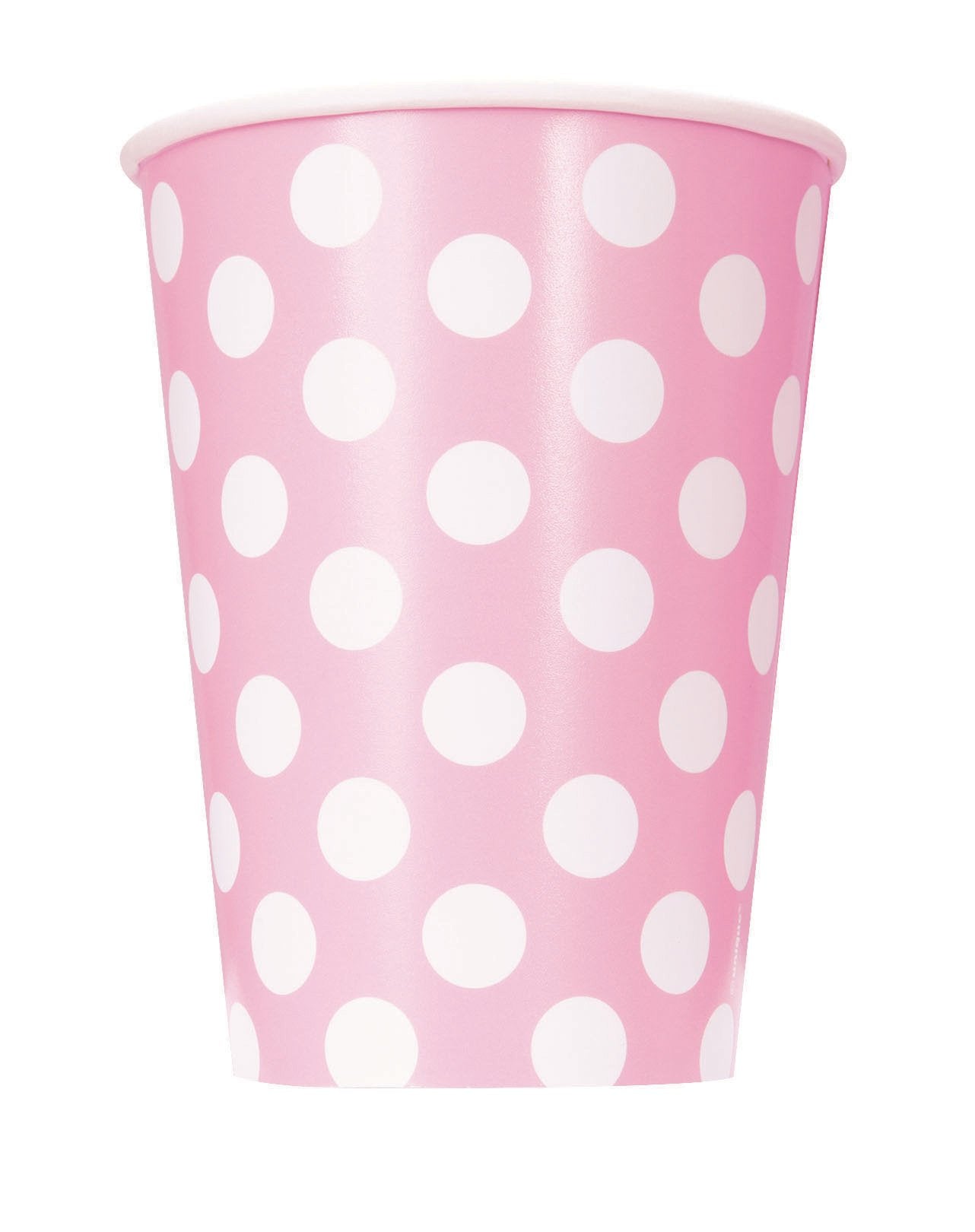Тази партида съдържа 6 розови чаши с бели точки. Те са изработени от картон и измерват височина около 11 см за диаметър 8 см. Той може да съдържа до 350 мл питие. Изберете за пастелно розов цвят и бъдете напрегнати за празничната украса на темата момиче или на темата от 50 -те години.