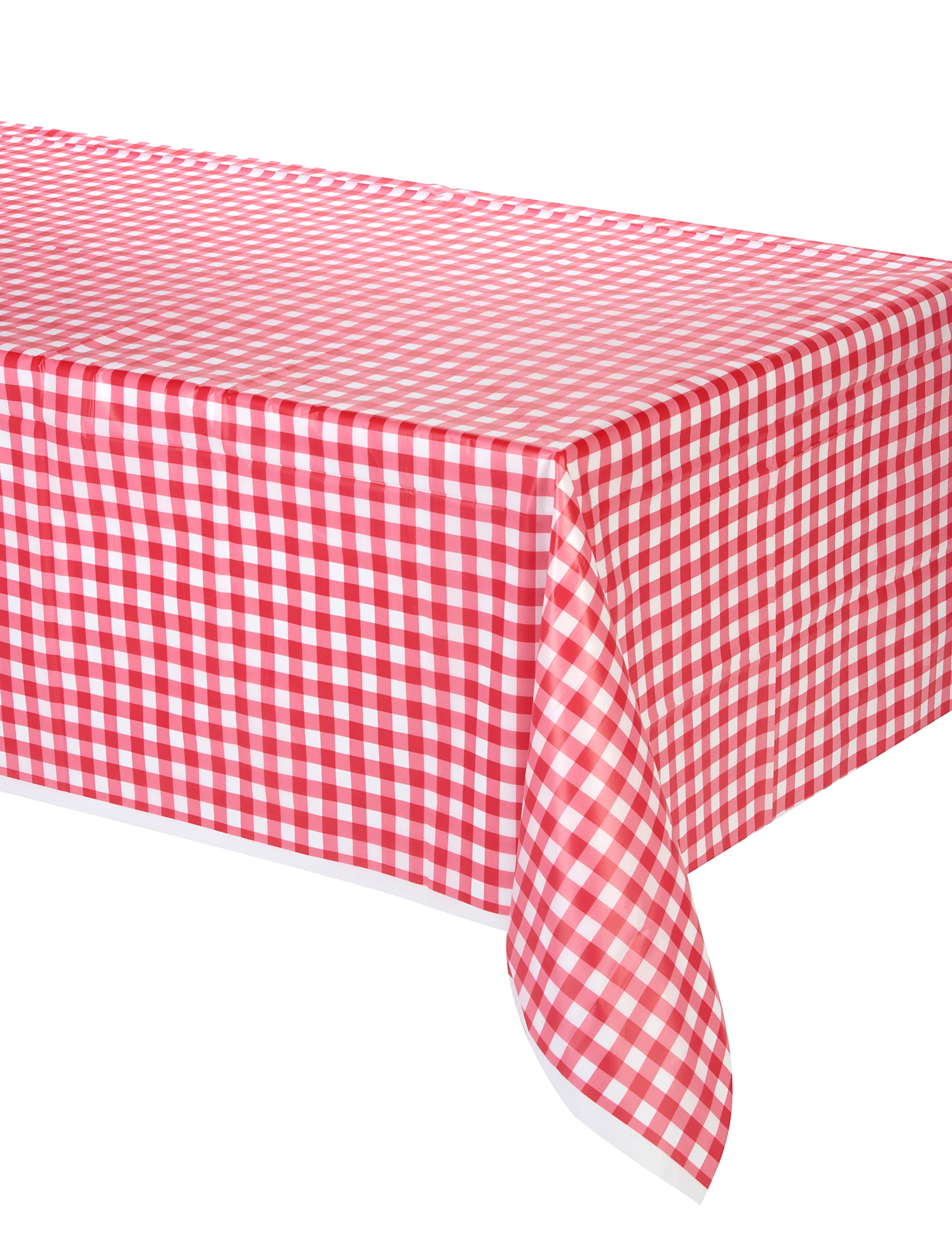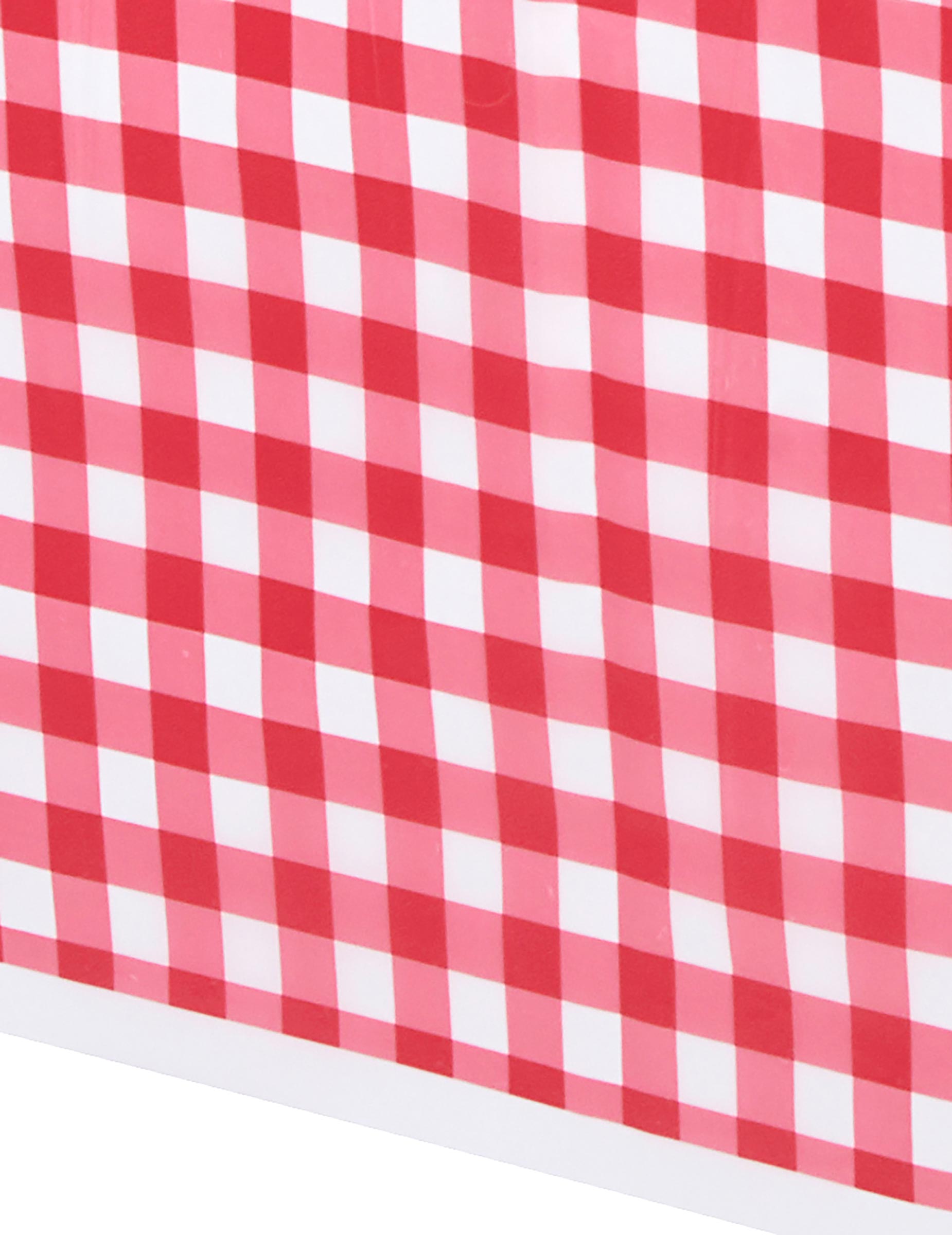 Тази пластмасова покривка на Vichy е с правоъгълна форма. Той има червен отпечатък на Vichy и има приблизително следните размери: 2,74 x 1,37 m. Поради пластмасовия си материал, който улеснява поддръжката му, тази покривка на Vichy модел ще бъде добре дошла по време на буколен пикник или да почете традиционна френска маса. Уникално парти за брандиране