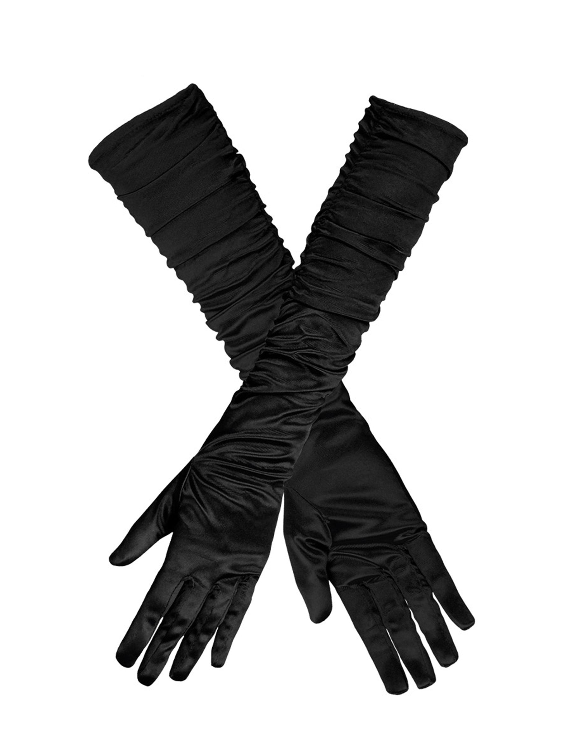 Тези дълги сатенени ръкавици за възрастни са черни. Плиси отстрани, те са с дължина приблизително 50 см. Тези дълги черни ръкавици ще бъдат идеални за завършване на бляскаво облекло с клас по време на кабаре вечер.
