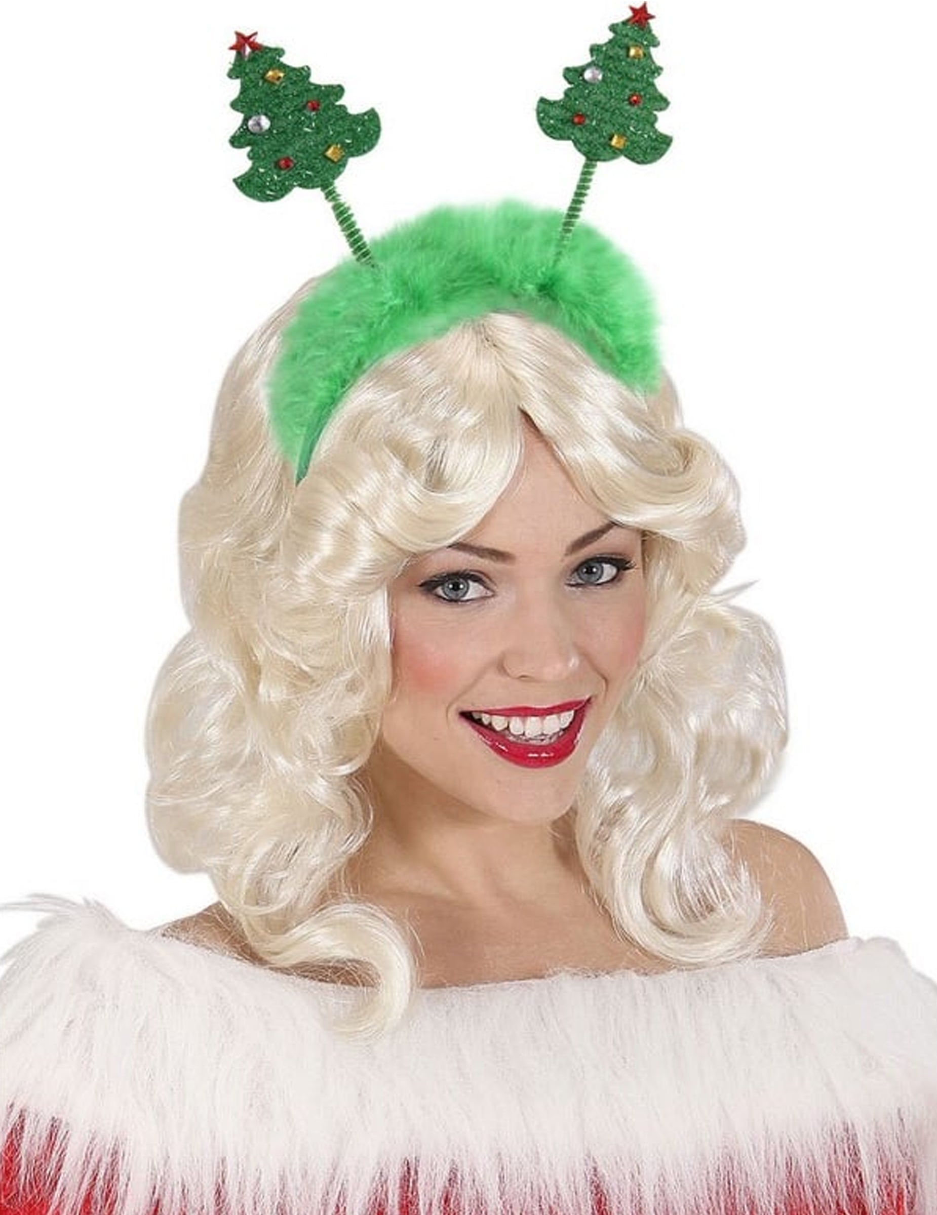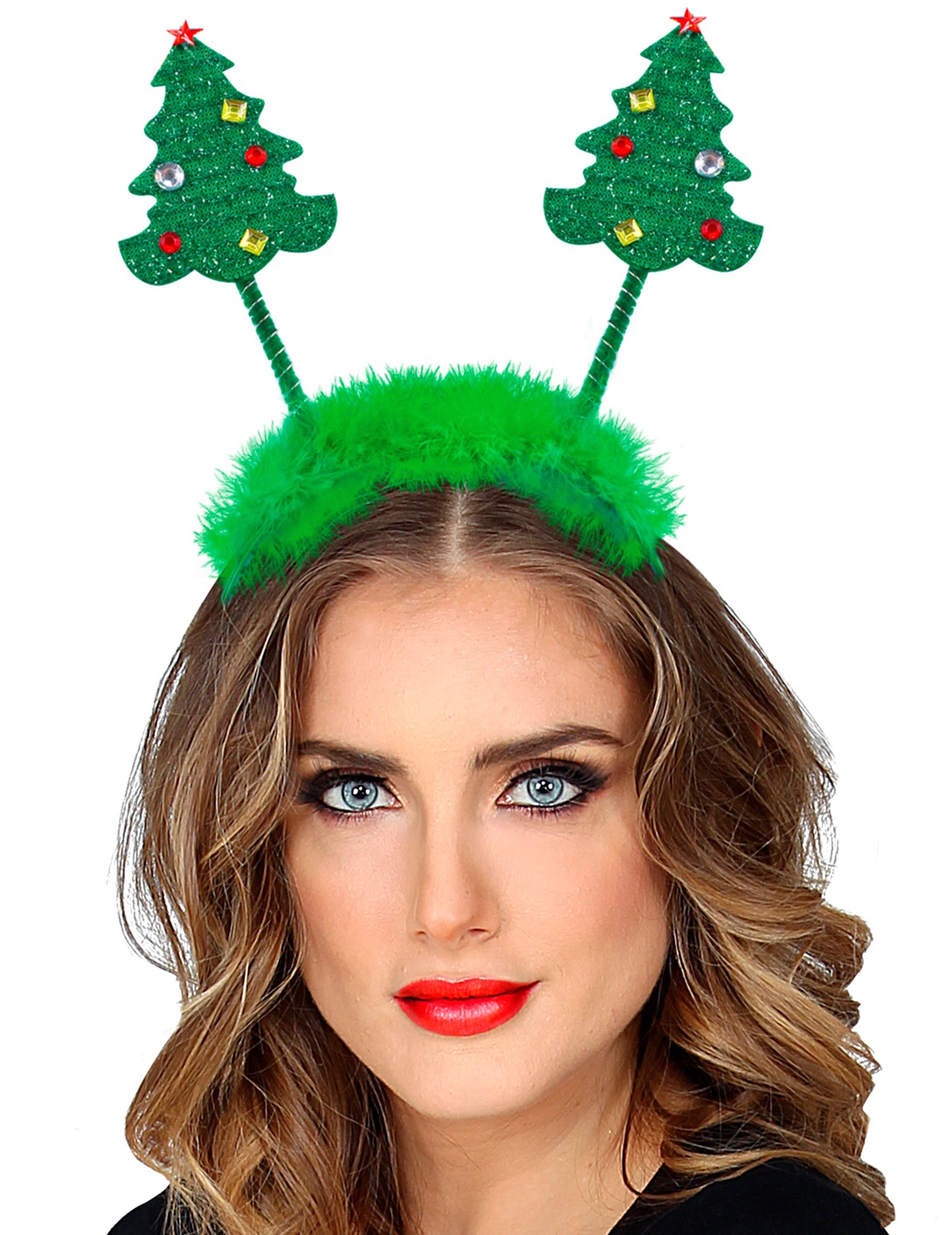 Тази оранжерия със зелена глава е съставена от 2 коледни елхи с размери приблизително 12 см височина. Те са фиксирани на извори. Оранжерията Têt е украсена със зелена козина отгоре. Той ще бъде идеален за завършване на вашата хумористична маскировка за празничния сезон. Copyright Widmann Srl