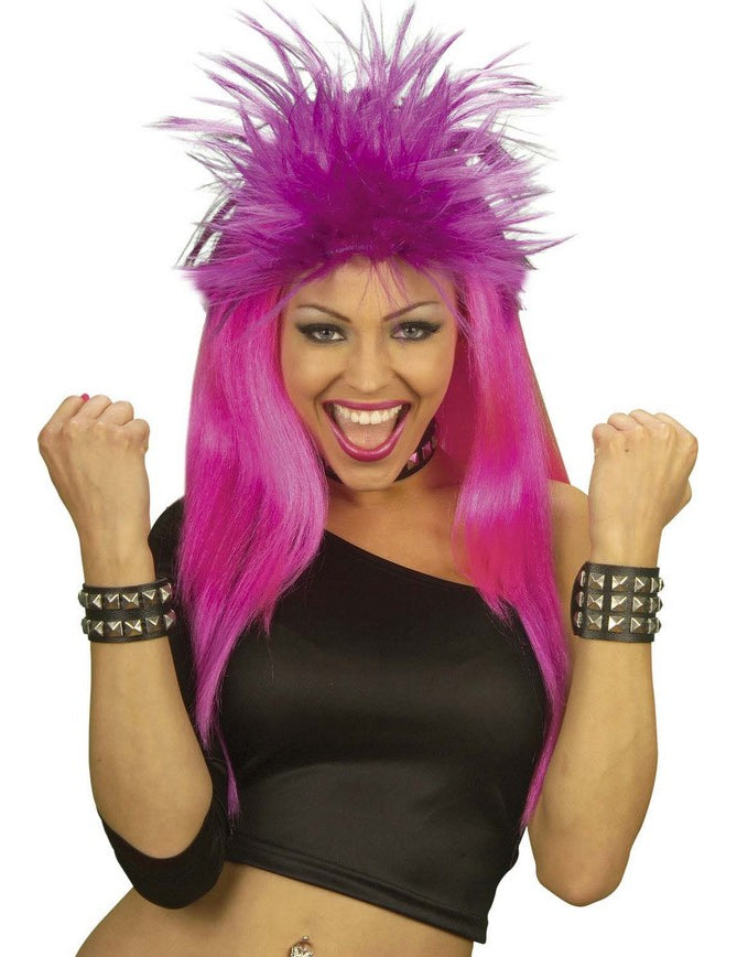 Тази гривна за рокер е черен и кожен ефект. Целият завой на гривната е обсипан и затварянето около китката ви се осигурява с бутон за натискане. Той е широк около 5 см. По време на тематични вечери или за концерт този аксесоар ще бъде перфектният актив на пънк, рокер или мотоциклетист например. Copyright Widmann Srl