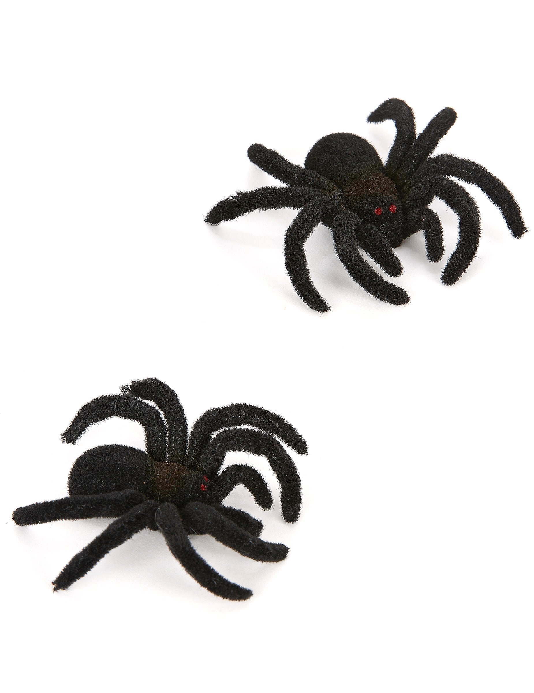 Тази партида се състои от 2 малки декоративни паяци. Те са черни на цвят и имат малки червени очи в предната част на паяците. Тези насекоми измерват приблизително 10 х 8 cm. Те ще бъдат идеални за завършване на вашата декорация на Хелоуин вечер. Copyright Widmann Srl
