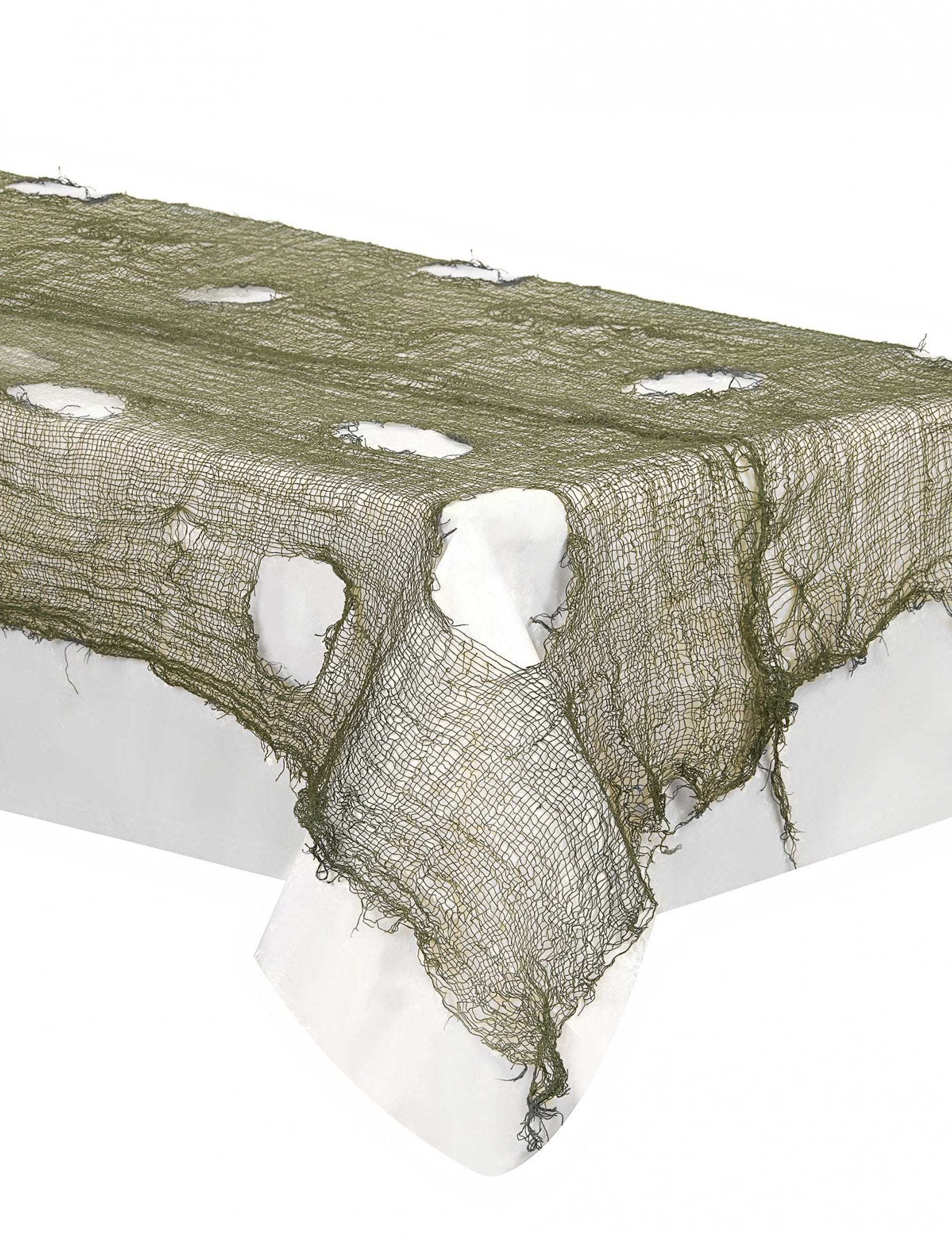 Тази декорация за Хелоуин се състои от лист (бялата покривка не е включена). Зеленият лист Khaki е дупки за разрушен и махарен стил. Той е с размери приблизително 60 х 300 cm. Можете да го закачите на стената или да го използвате като покривка, за да създадете зловеща декорация, достойна за нощ на Хелоуин. Пресъздайте перфектен декор за Хелоуин с този мрачен лист!