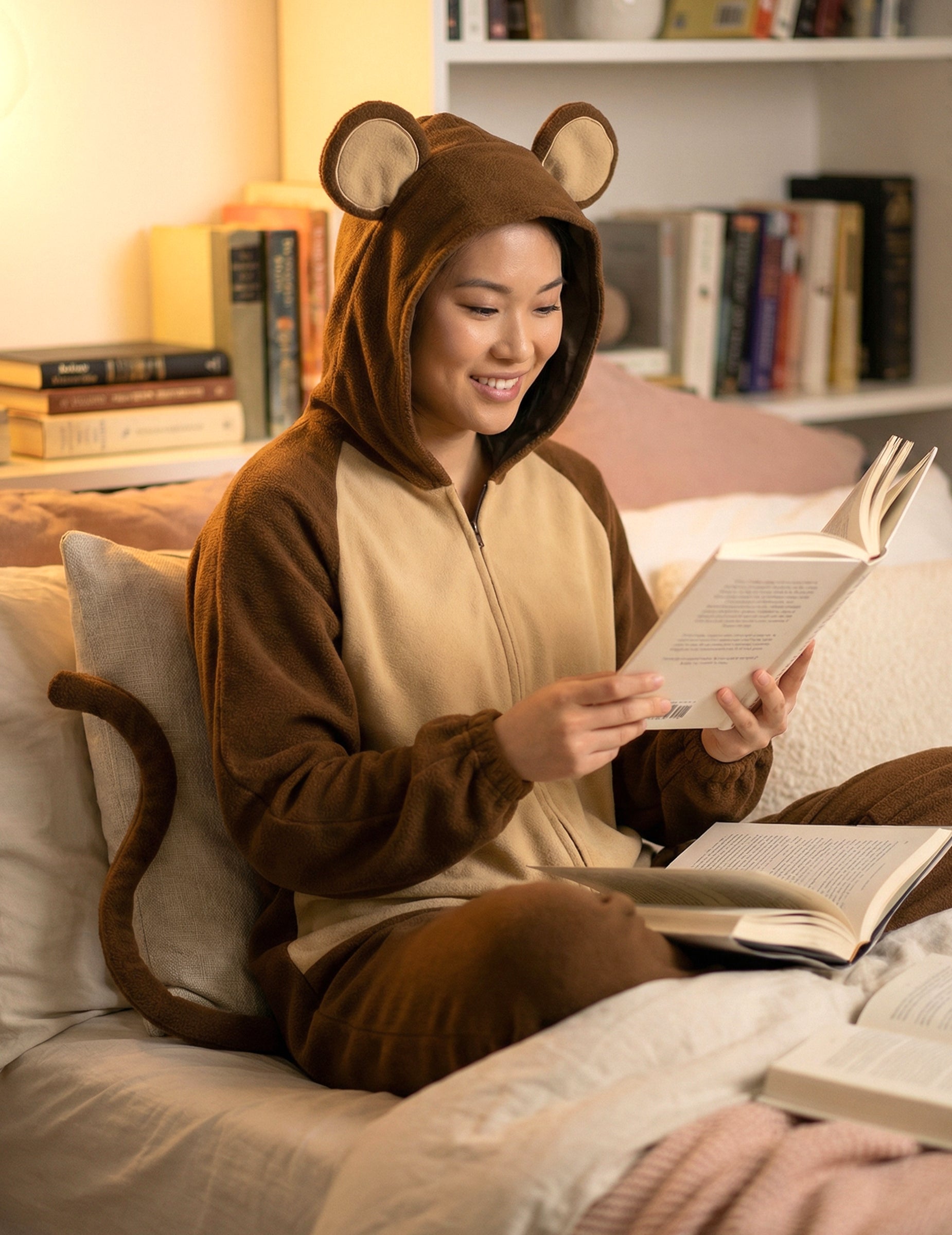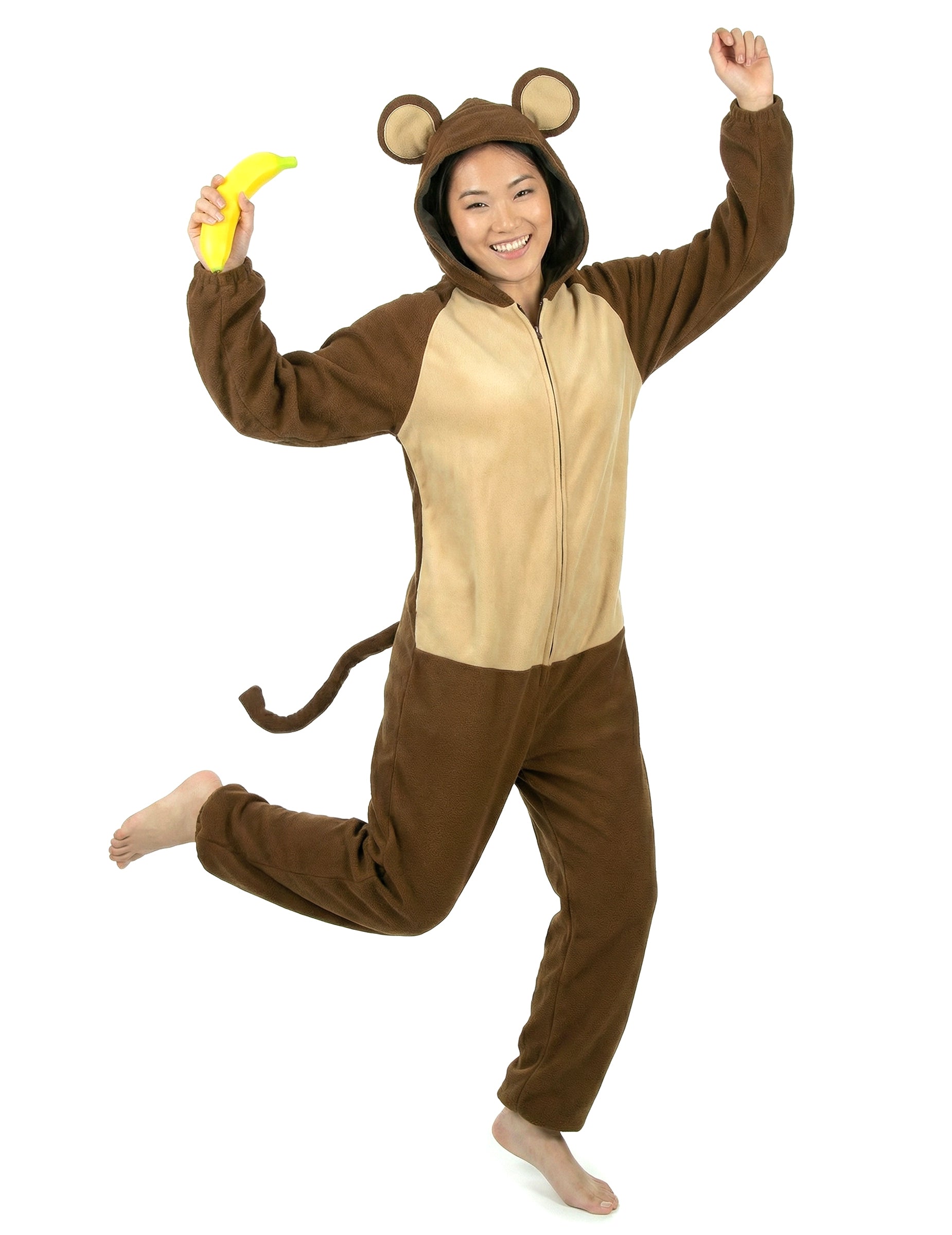 Този костюм на маймуните за жени се състои от комбинация (аксесоарът не е включен). Комбинацията е кафява на цвят. Всъщност полярен, той има цип отпред, който ви позволява да го поставите лесно. Тя е по -ясна на нивото на бюста, а качулката, преодоляна от две малки маймунски уши, се пришива с дрехата. Еластиците присъстват в китките и глезените за перфектна опора. И накрая, опашката украсява гърба на комбинацията, можете да я оформите, както желаете. Този хумористичен костюм ще бъде идеален за превръщането ви в маймуна и вашите приятели по време на прикритите ви вечери.
