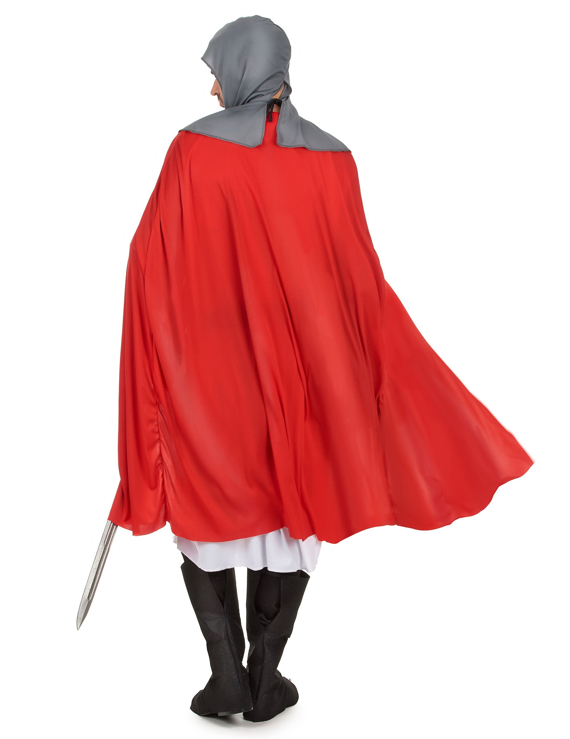 Този костюм за рицар-кръстоносец Включва туника, наметало, калъфи за ботуши, качулка и колан (меч, панталон и обувки не са включени).