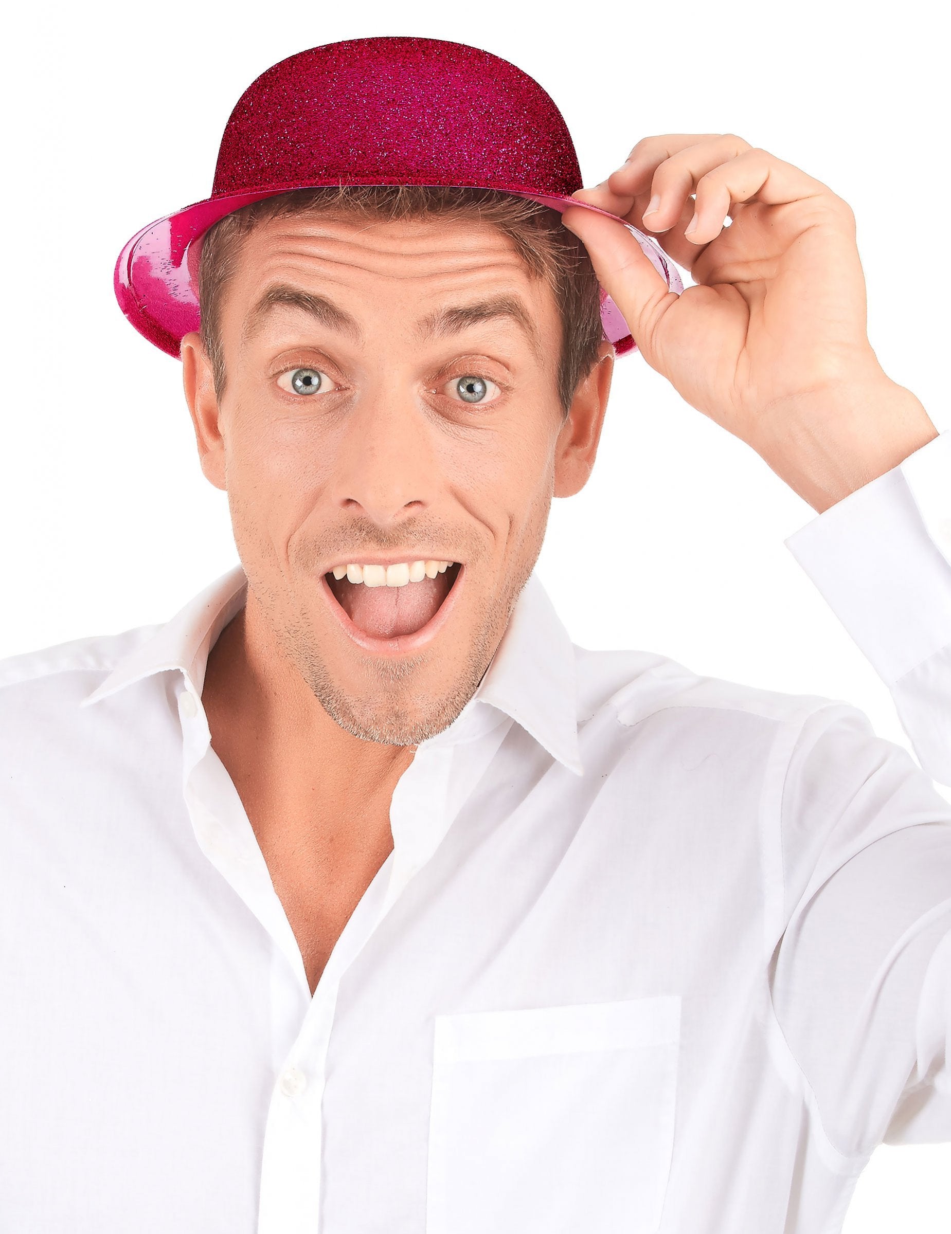 Тази шапка за възрастни пъпеши е изработена от фина пластмаса Fuschia. Покрит е с блясък, който ще му придаде лъскав вид. Той има завой на главата от около 56,5 cm. Този аксесоар ще бъде идеален за завършване на цветна маскировка в карнавалната вечер.
