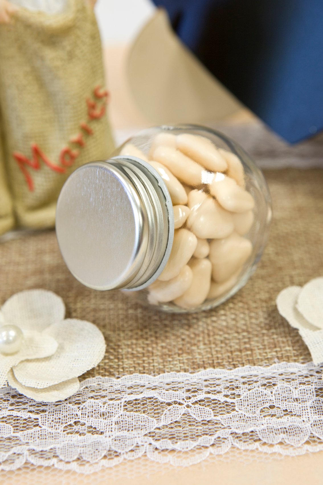 Този малък стъклен буркан е във формата на топка. Той е снабден със стоманен капак, който винтове и фермата херметично. Той е с размери приблизително 8 см, диаметър 5 см при най -широкия и 4 см при отваряне и отговаря на стандартите за храна. Поставете драги вътре по повод вашата сватба или я използвайте като декорация на маса, като я напълнете с пясък или цветна вода за бебешки душ или кръщение. Съвет: Украсете го с малка панделка или етикет, регистриран с име или дата на събитието, за да персонализирате малкия си буркан, преди да го предложите на гост!