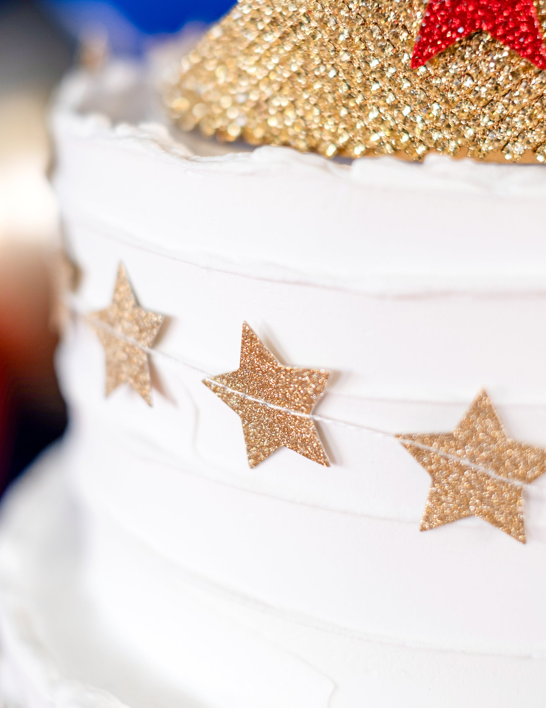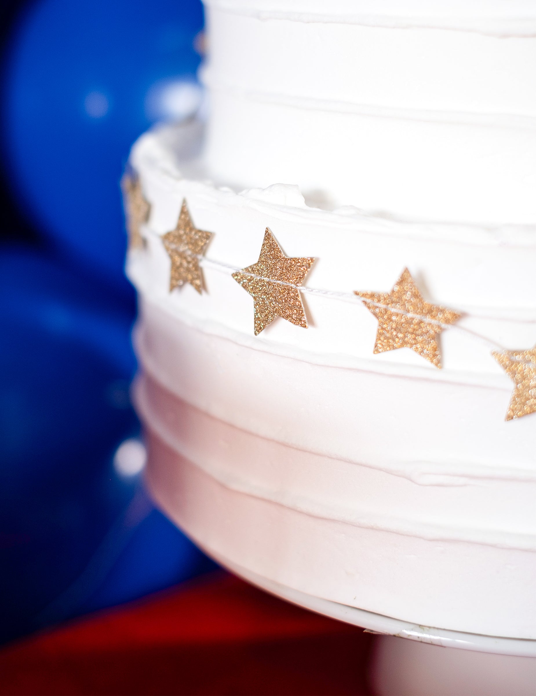 Тази гирлянда от 2,5 -метра се състои от малки картонени звезди с диаметър 3 см. Тези звезди са златисти блестящи и се държат между тях от бяла струна. За декорация по темата за космоса или феите, тази гирлянда ще бъде идеална!