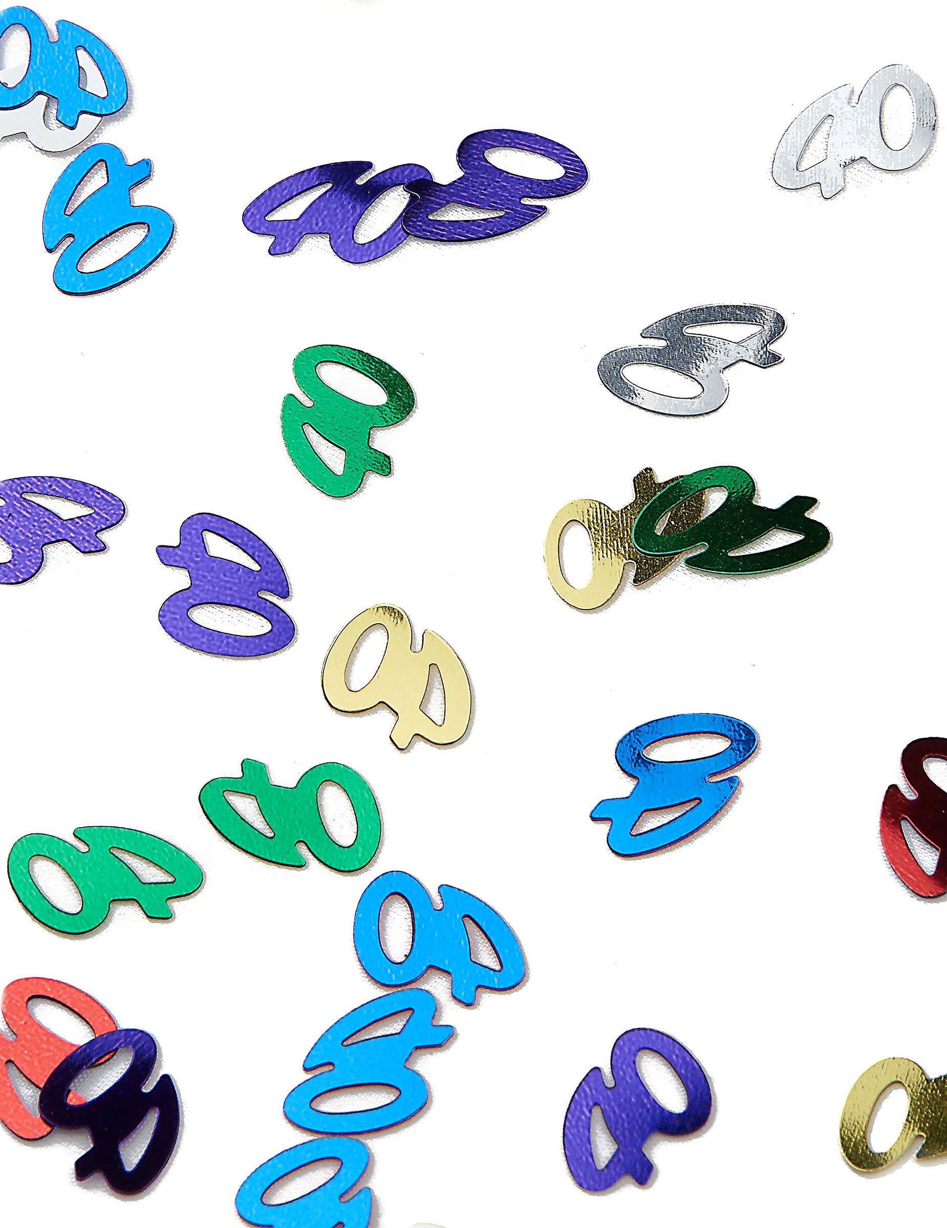 Тази торба с конфети от 14 грама "40 години" е с различни цветове: синьо, червено, жълто, сребро, лилаво и зелено. Те измерват 1x1 cm и са в твърда пластмаса. Те ще бъдат идеални за декориране на вашата маса за 40 -годишен рожден ден!