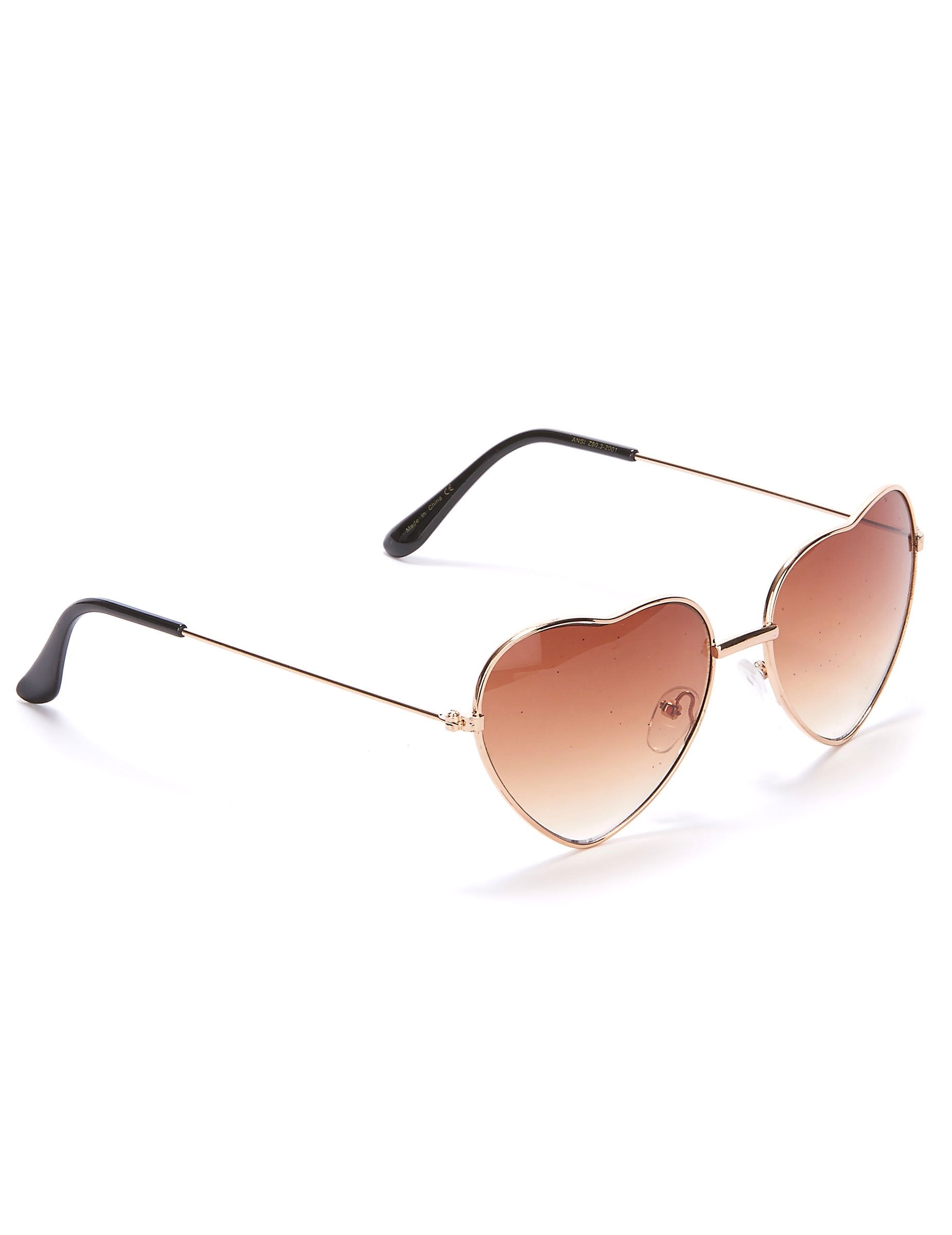 Тези превъзходни очила имат очила с сърце и имат кафява влошена сянка. Монтажът е направен от метал и отбележете наличието на плочи за носа и пластмасовите накрайници в краищата на клоните. За да аксесоари за вашия хипи костюм, тези очила ще бъдат идеални за карнавал или за всяка друга възможност за прикриване!