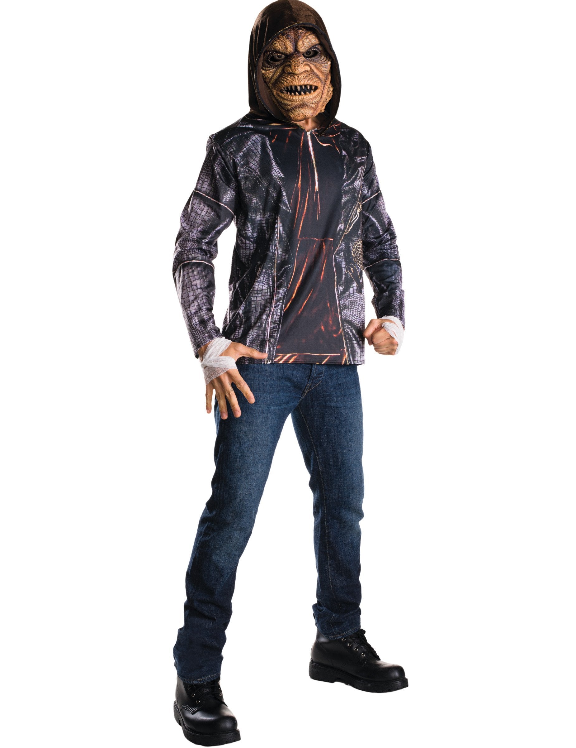 Това прикриване на убиец Крок, за възрастни, е под официален лиценз за самоубийствени отряди. Състои се от връх с качулка и маска (превръзки, панталони и обувки, които не са включени). Горната част е отпечатана отпред и отзад на якето с ефект на влечуги, Killer Croc, както и неговата кафява суитчър. Кафявата качулка, която има кадифено външен вид, е пришита на врата. Това отпечатано високо, е поставено като тениска. Полумашерната, като този супер лош човек, е в гума. Той има отвори в очите, носа и устата. Той се носи с помощта на еластик, който се затваря благодарение на драскотина. Този убиец крок прикрива с Деми-Маске, ще бъде идеален за въплъщение на този известен герой в отряда за самоубийство, по повод карнавала или прикрита вечер.