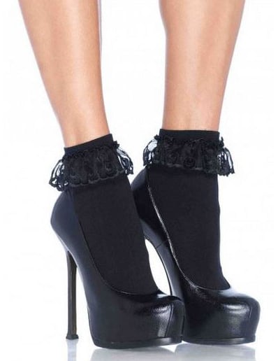 Тези чорапи са за възрастни. Черни на цвят, те са приблизително 20 см с плоска дължина. Те са съставени от черна дантела в глезена. Този чифт чорапи ще бъде идеален за завършване на облекло за Хелоуин по време на прикритата ви вечер.