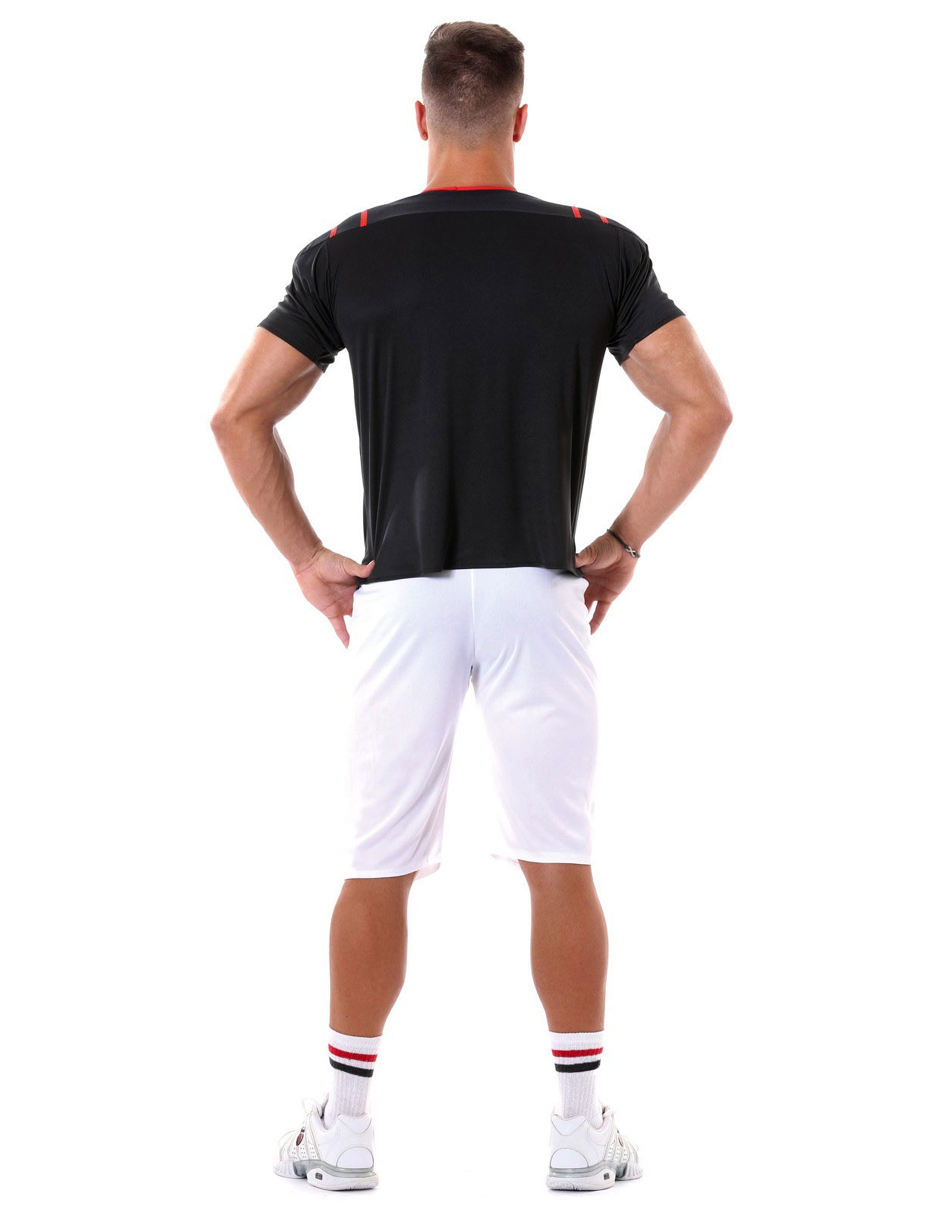 Този американски футболист е за мъже и включва тениска, къси панталони и рамене. Тениската е в гъвкава черна тъкан. Къси ръкави, той е с V -нек и показва споменаването "69" отпред. Шортите са бели с ивици от червена тъкан и имат еластичен размер за вашия комфорт. Фалшиво черно облицоване и подплънки от пяна отпред добавете реализма на цялото. Накрая, епаулетите се състоят в две подплатени възглавници от пяна, свързани между тях чрез еластични ленти. Те ще трябва да обикалят шията след това под ръцете, за да гарантират поддръжката. Сложете тениската, за да получите изграждане, достойно за истински спортист! Тази маскировка ви се предлага в един размер и съответства на M/L добавете към тази маскирана две черни линии по бузите ви и започнете в мача по време на прикрито парти или спортно събитие!