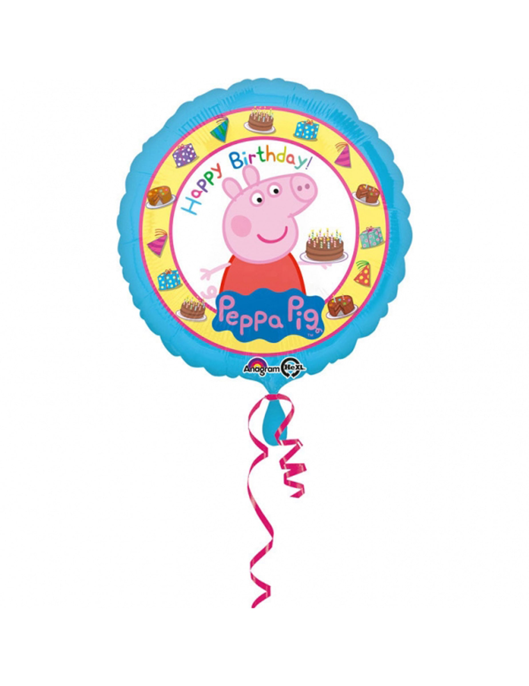 Тази топка за рожден ден Peppa е под официален лиценз. Той е изработен от алуминий и е с диаметър 43 см в диаметър приблизително веднъж завишена (розовата лента не е включена). Той представлява малкото пепа прасе, носещо торта и заобиколено от празнични шарки. Споменаването „Честит рожден ден се появява в цветни букви. Можете да го надуете във въздуха или да използвате хелий за по -въздушен ефект. Вашата декорация на рождения ден върху темата за свине на Peppa ще се радва и щастлива за успешното парти!