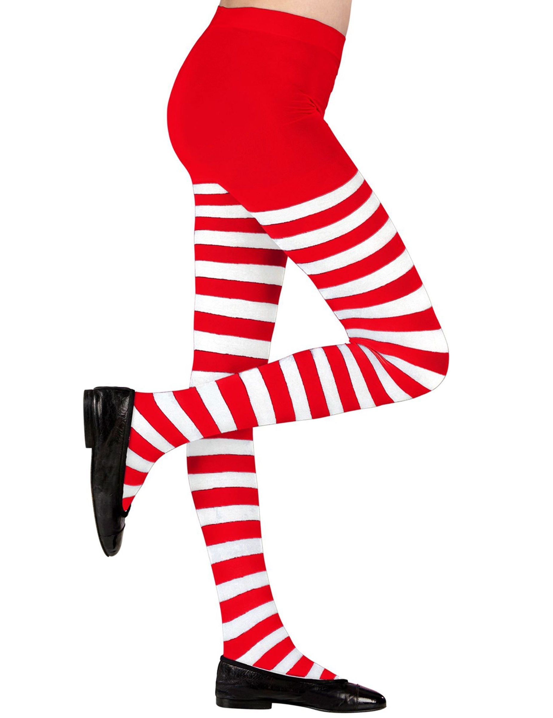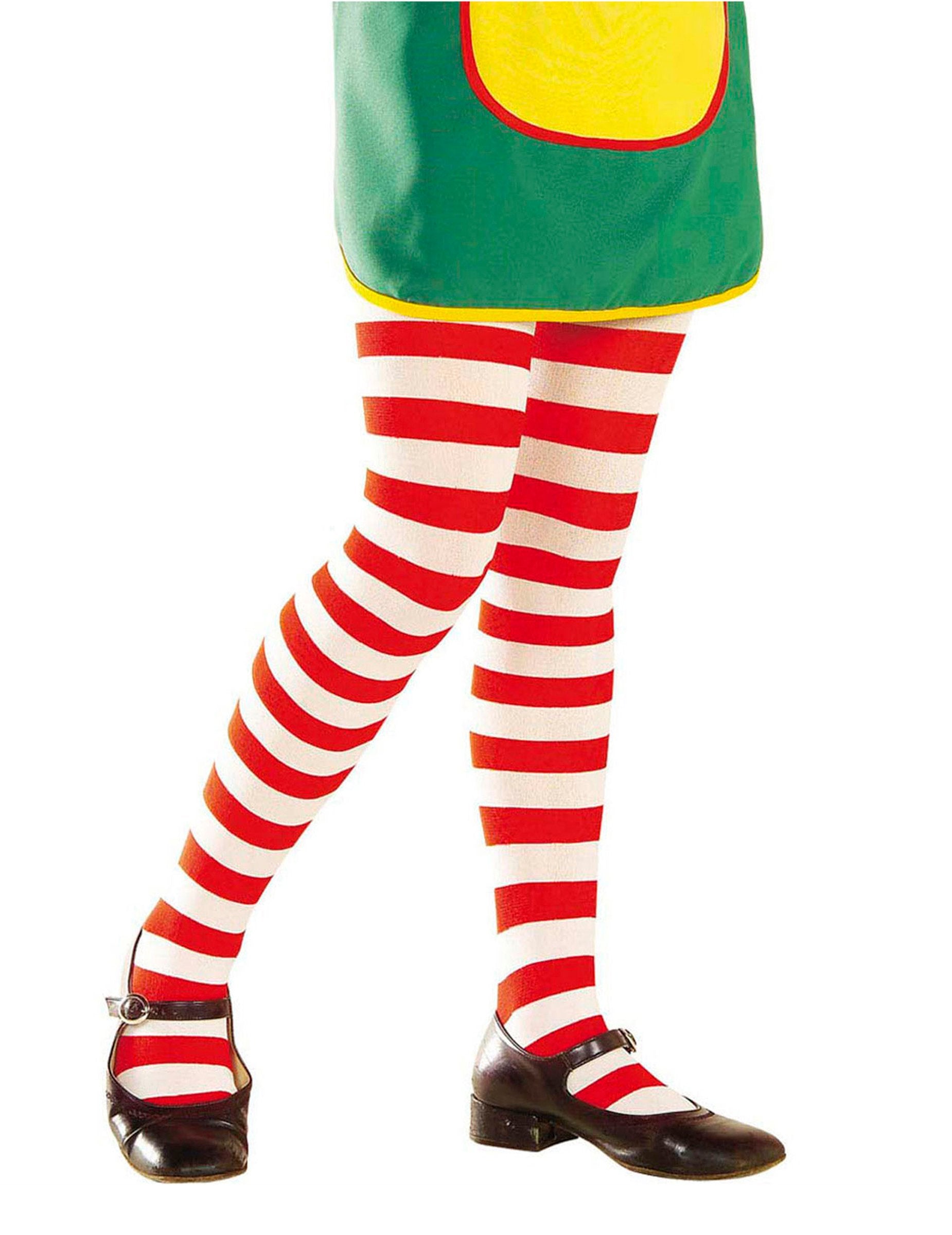Чоравите на тези деца са зачервени и бели. Удобно, тези чорапогащи са идеални за завършване на цветна маскировка за карнавал. Copyright Widmann Srl