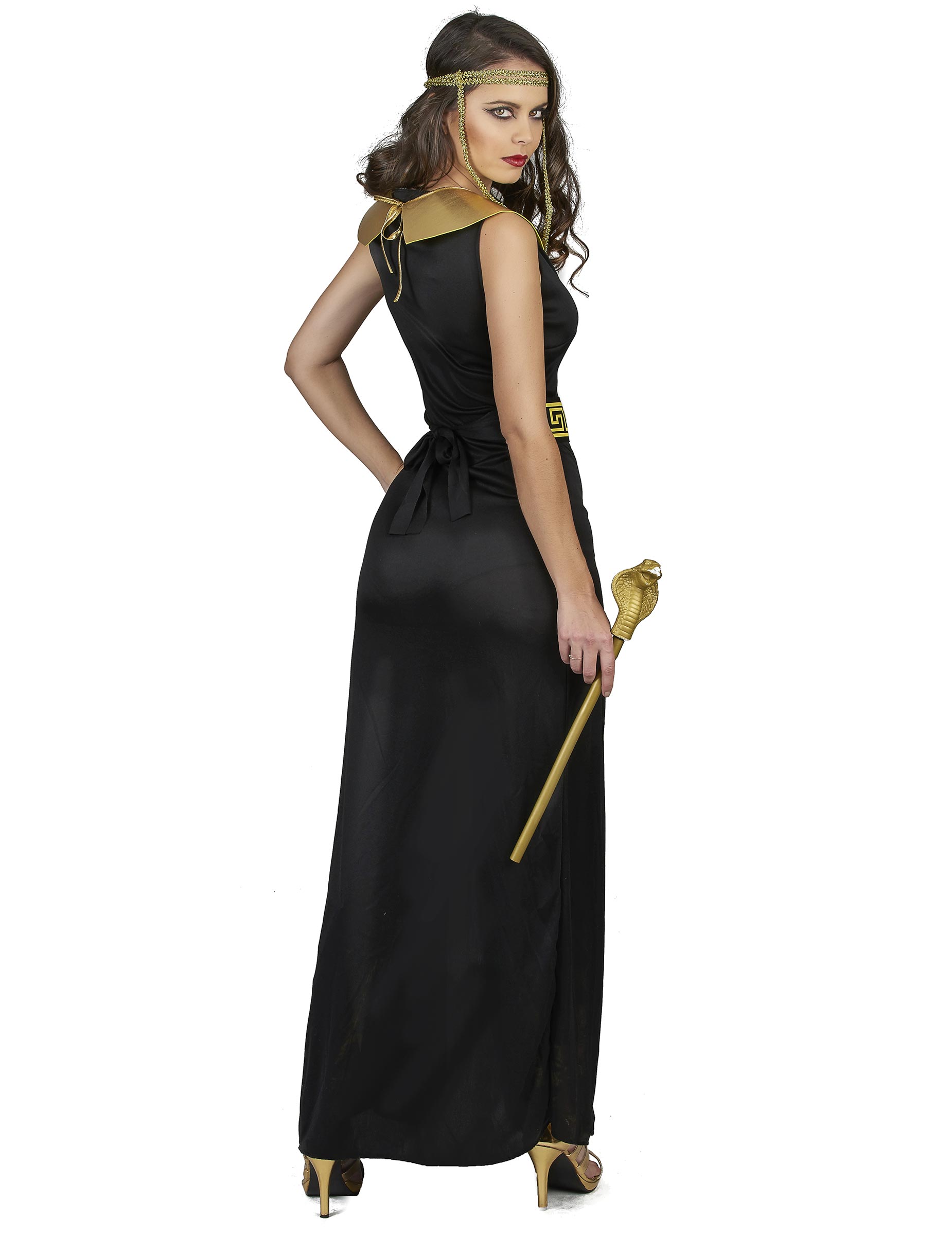 Този египетски костюм за жени включва рокля, яка, шапка и колан. Дългата и черна рокля е разделена на две места от коленете. V V е украсен със златни граници, пресичащи се. Пропускът е прикачен с помощта на връзки и се отпечатва с египетски мотиви. Златната капачка на плитка е еластична и следователно ще отговаря на повечето кули на главата. И накрая, коланът, който ще бъде вързан в гърба, перфектно има достъп до вашия размер. По време на парти с древна тема на Египет или друга възможност да ви прикрие, този костюм на Cleopatre ще бъде идеален.