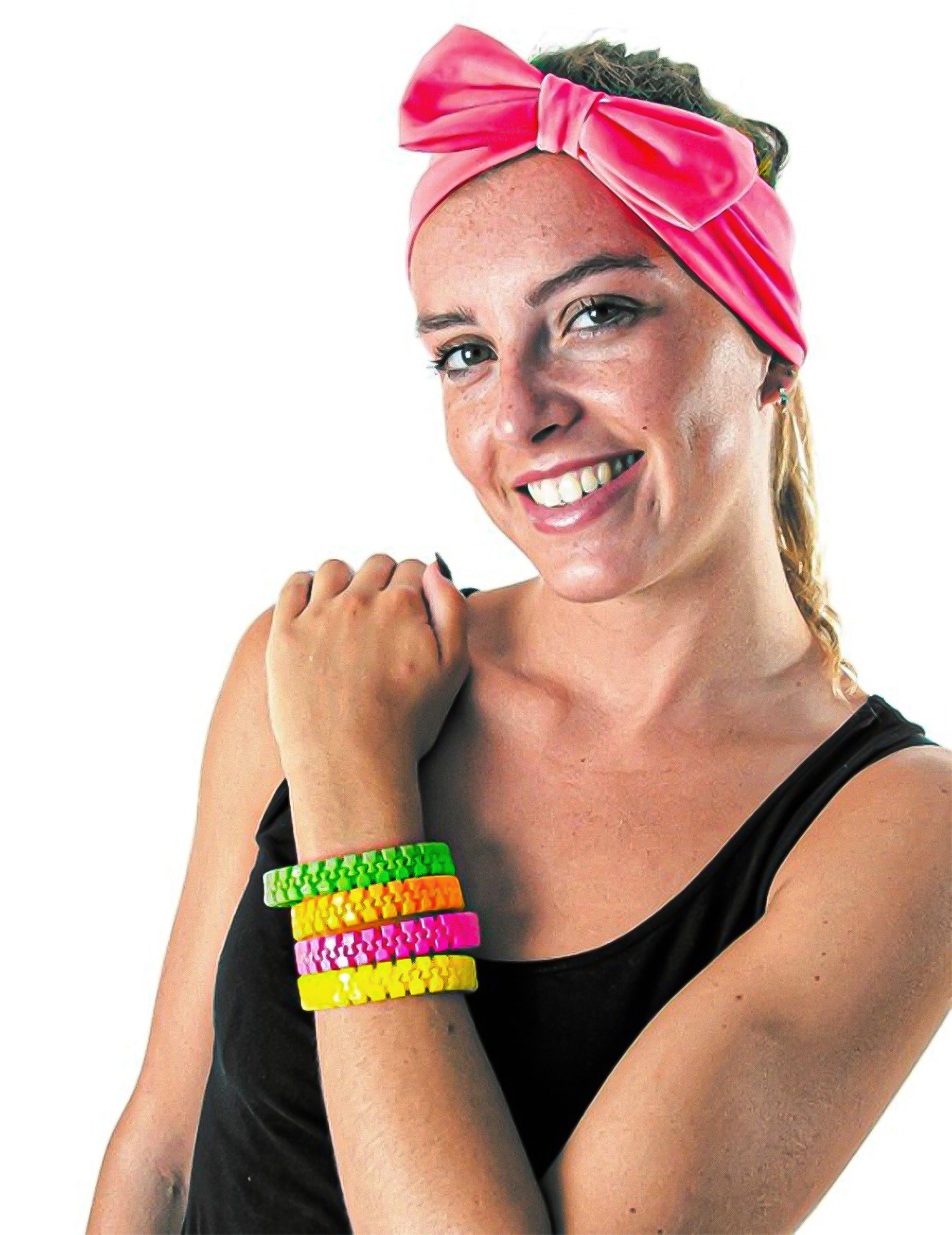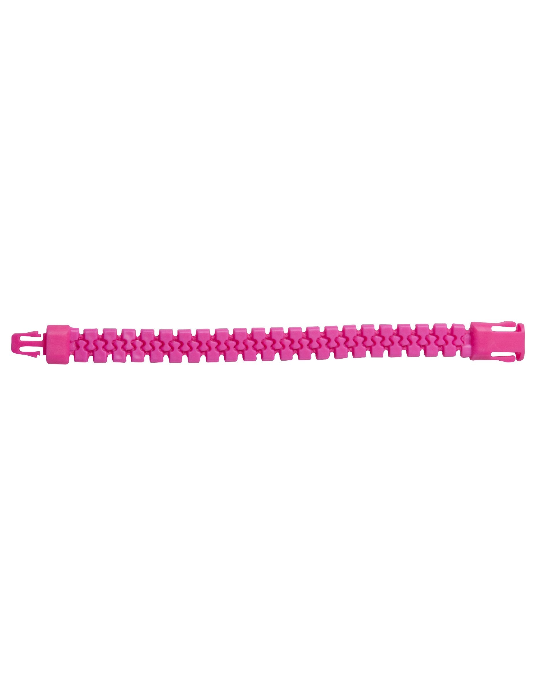 Тази флуоресцентна розова гривна с цип е пластмасова. Той дава илюзията за цип и клипове, за да затвори гривната. Дълъг е 22 см. Тази гривна ще бъде идеална за вечер по флуоресцентна тема или 80 -те и 90 -те.