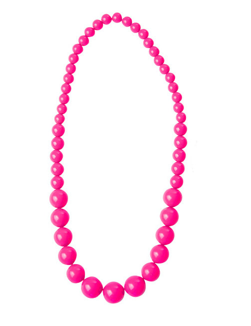 Тази флуоресцентна розова колие е съставена от големи пластмасови перли. Дълъг е около 50 см. Това колие ще бъде идеално за завършване на вашия костюм за парти на дискотеката или флуоресцентната тема!