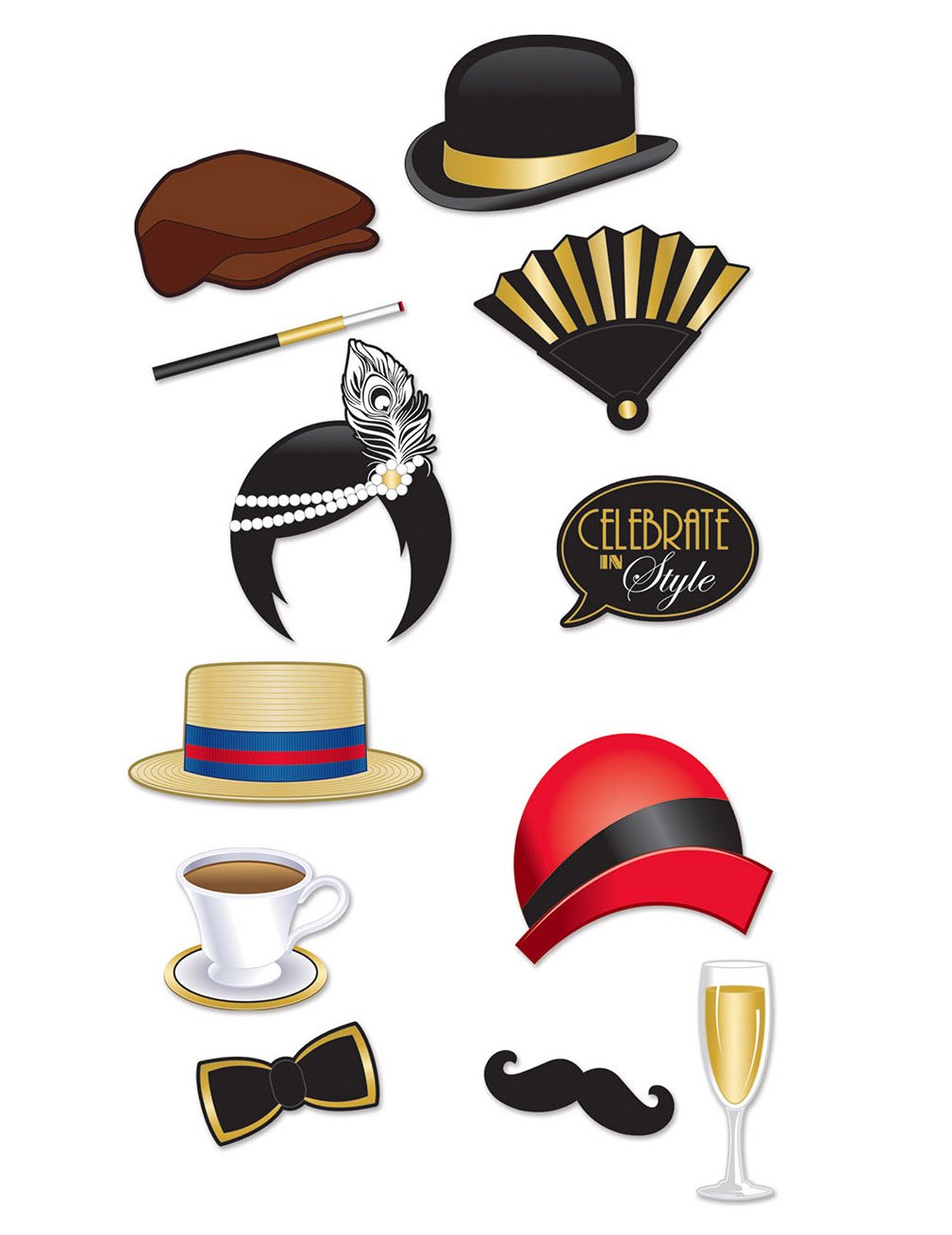 Този фотобучен комплект се състои от 12 аксесоари на темата от 20 -те години на миналия век. Тази партида съдържа парчета от 16 до 28 см: мустаци, перука с банер, три шапки, чаша кафе, чаша шампанско, врата на цигара, гама, капачка на Gavroche, папийонка и балон. Направете забавна и оригинална анимация благодарение на този комплект Photobooth по време на темата ви!