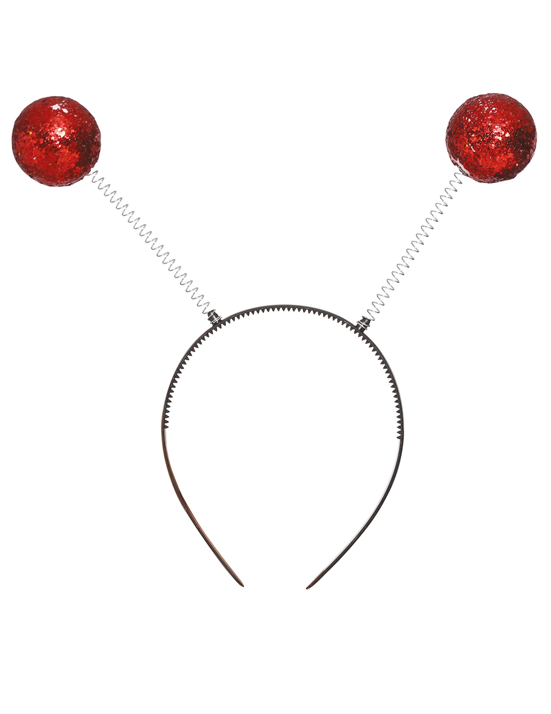 Този аксесоар е лента за глава, украсена с червени блясъци. Топките се поставят на пружини и затова са мобилни. За да завършите костюм на калинката или просто да блестите вечер, тази лента за глава е съществен аксесоар!